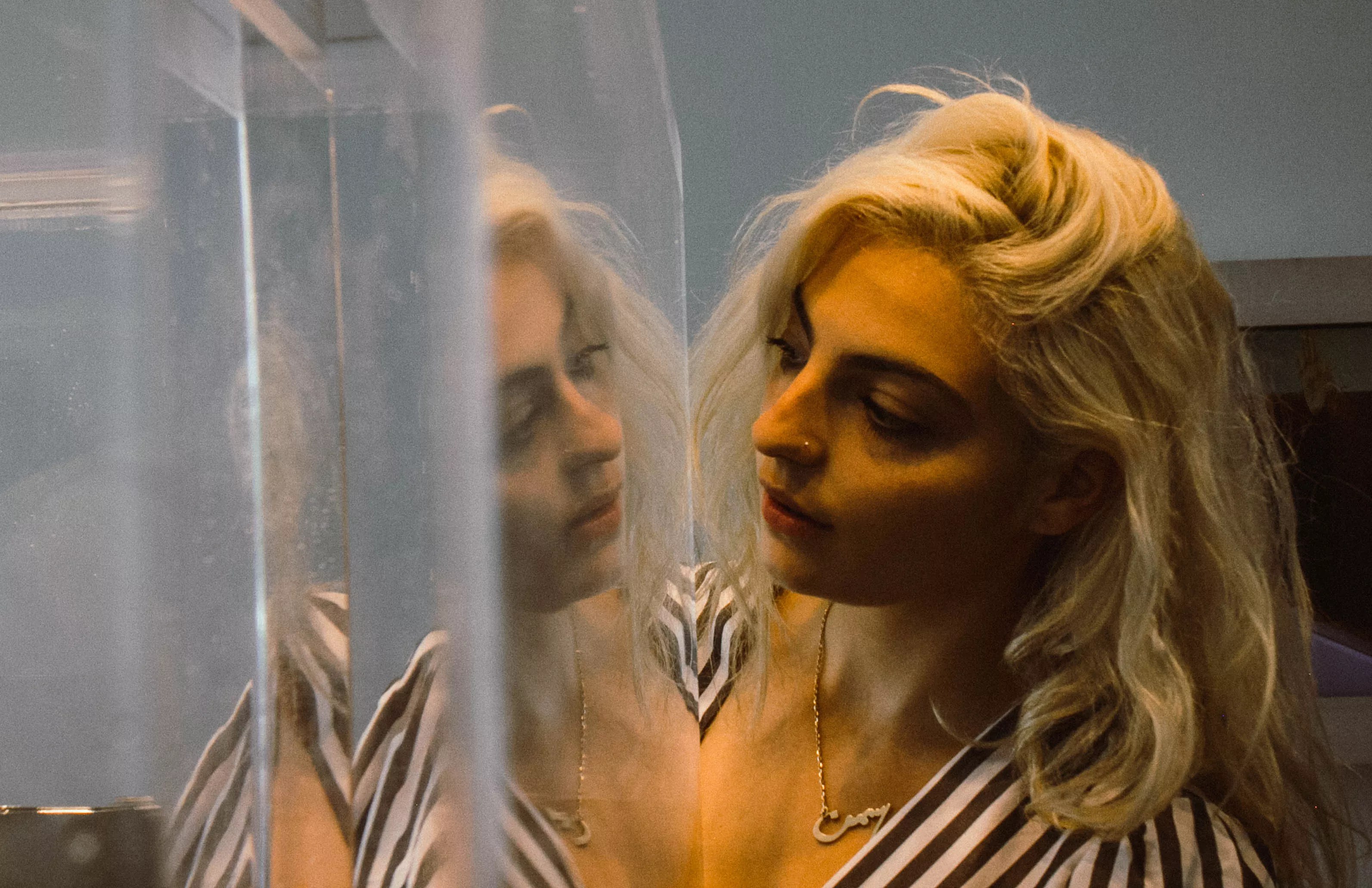 YaSi in front of Kristin Hatgi Sink’s “Honey, Bath.”