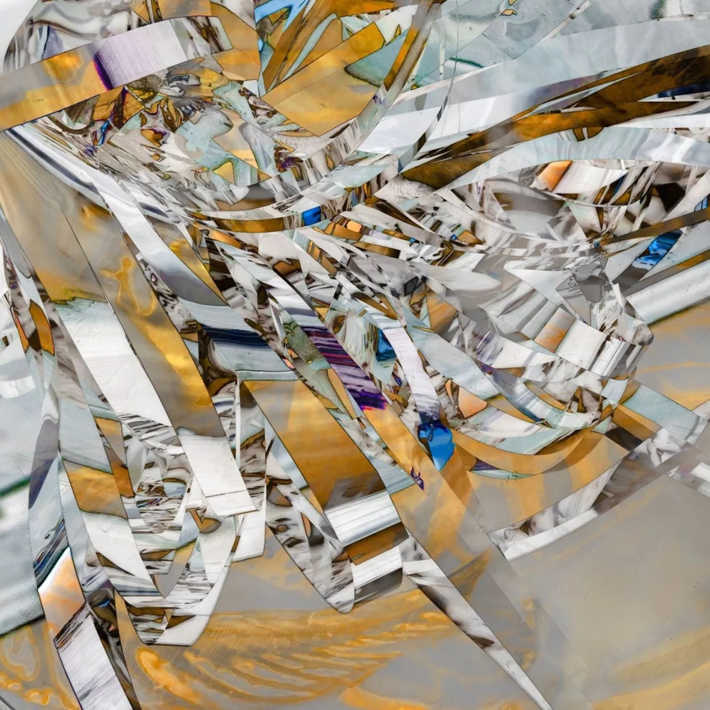 Bonny Lhotka, “Fracture One,†pigment on metal.