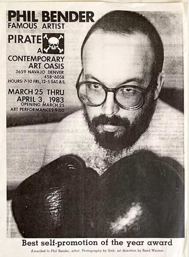 The show of new and old works by founding artists will also include a living wall of posters and ephemera. Artists Weimer and Romeo have brought a bounty of history and memories to the exhibit, as well as Sink and Pirate founder Phil Bender. “People recognize the emotional and fundamental history of Navajo Street through Phil,” says Matarazzo.