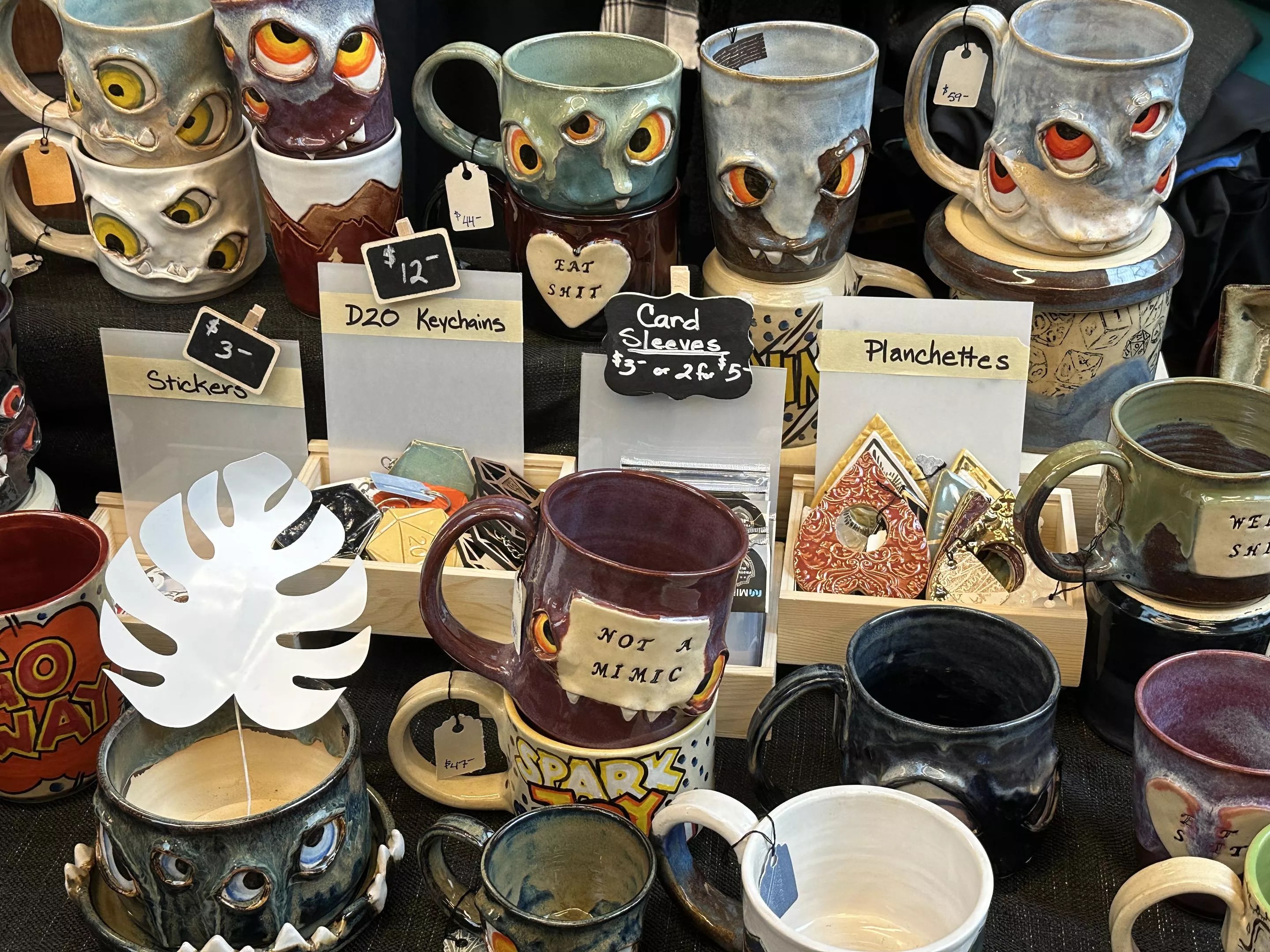 Our favorite is the mug that insists despite the clearly visible eyes and teeth that it is not, in fact, a mimic. Ah, the opportunity for your morning coffee to finally taste you back.