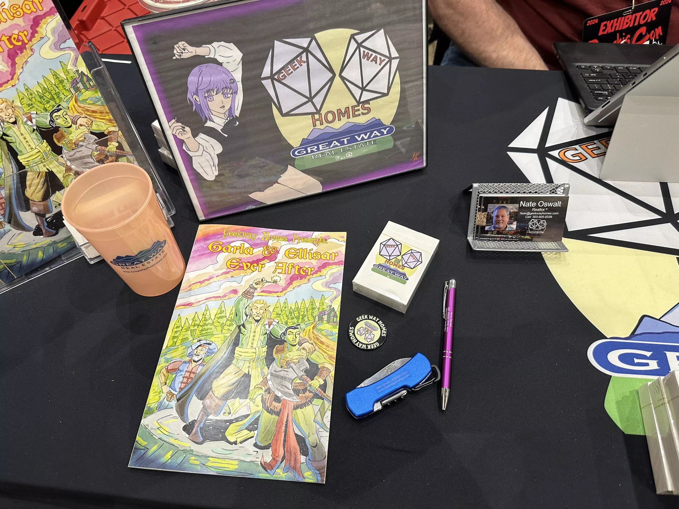How has no one ever thought of this before? Denver-area realtor Nate Oswalt specializes in partnering up with folks from the gaming community and helping them look for homes that might best fit their geekier passions, whatever they might be. And since booty is one of the best parts of any adventure, he brought a trove-full: a custom comic book, playing cards, a game token, pens, cups and even a pocketknife. (The homes, we assume, cost a bit more.)