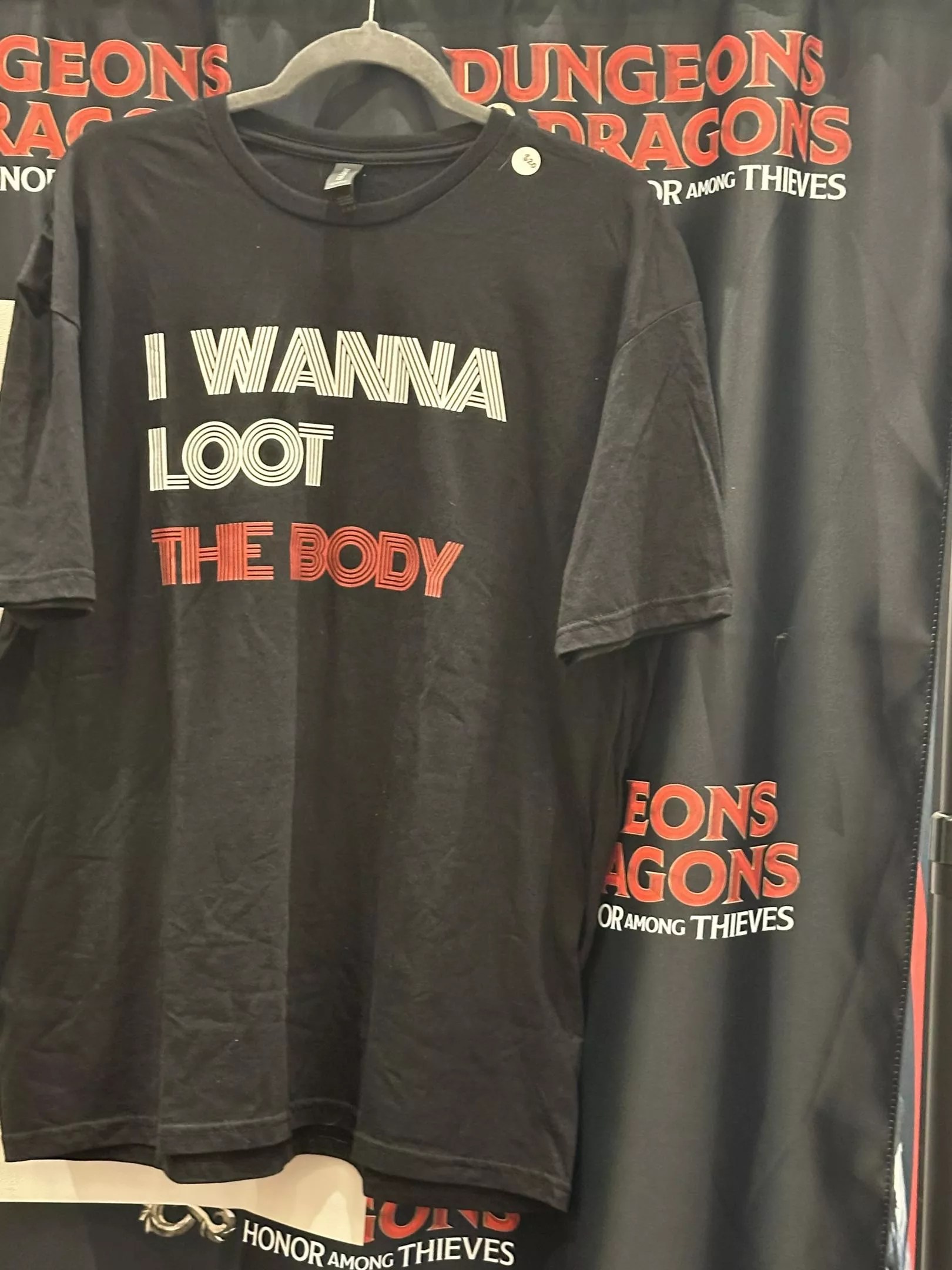 It’s quite possibly the most oft-spoken line in D&D, perhaps after “I check for traps,” “Do I hit?” and “Am I dead?” Every game, tabletop or digital, includes the requisite looting of your foe once said enemy has been vanquished. We don’t call it grave-robbing. We call it dungeoneering, thank you. Find this shirt at creator Haili Holub’s nerd-supply website threeheels.com.
