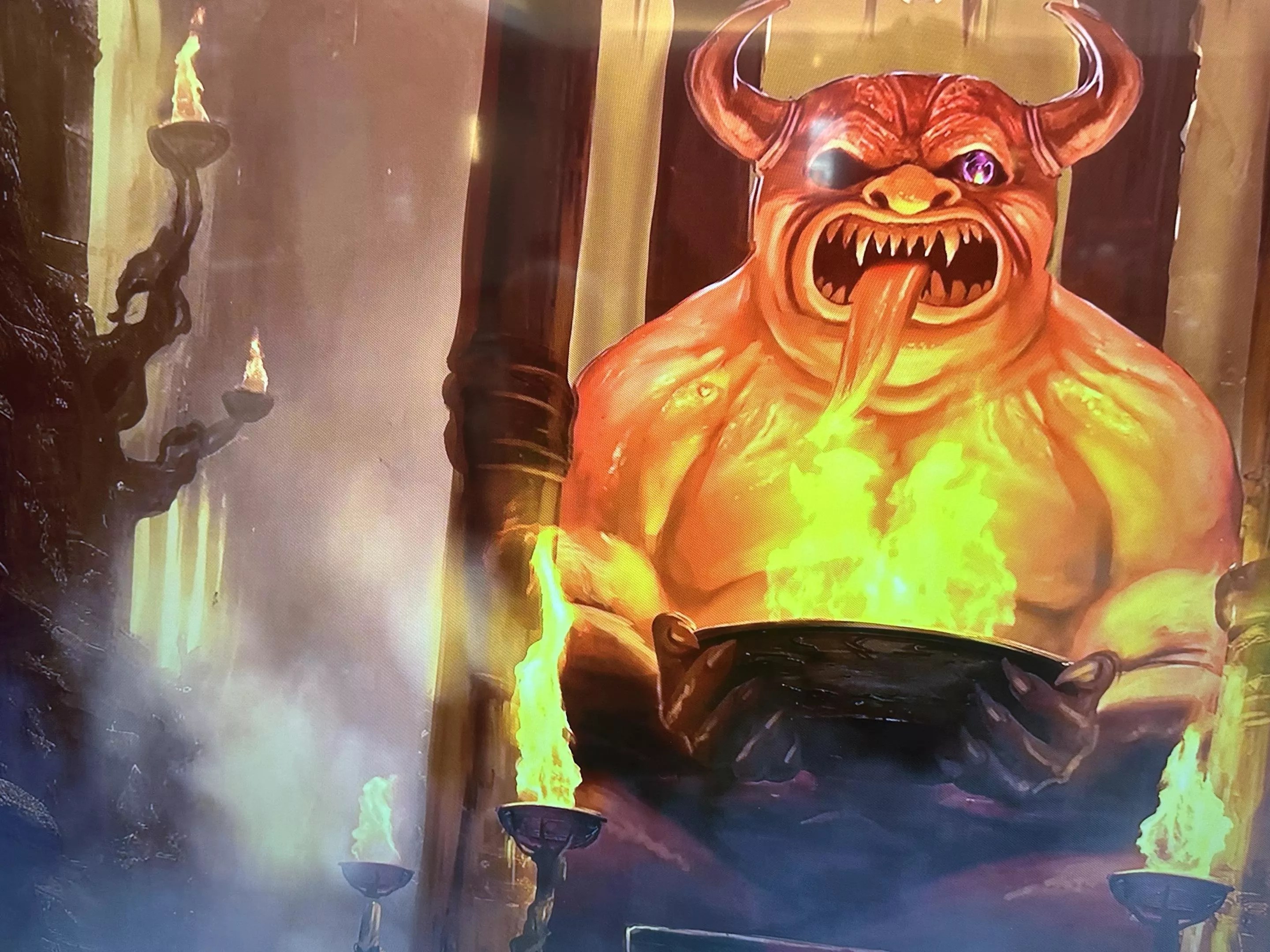 Straight from the cover of the original Player’s Handbook (and artist D.A. Trampier) comes this sacrificial statue animated for GenghisCon, complete with flickering flame and a darting and disturbing tongue. The fact that this was displayed proudly on monitors all over the gaming floor was both a reminiscent gesture to the Satanic Panic of the 1980s and a reminder of how far gaming has come since.