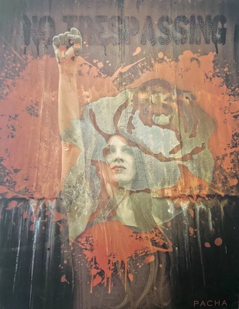 J. Bruce Wilcox, RIOT! The Politics Of Everything Edica Pacha, multiple-exposure in-camera photograph, wheat-pasted on wood. Edica Pacha, IRL Art