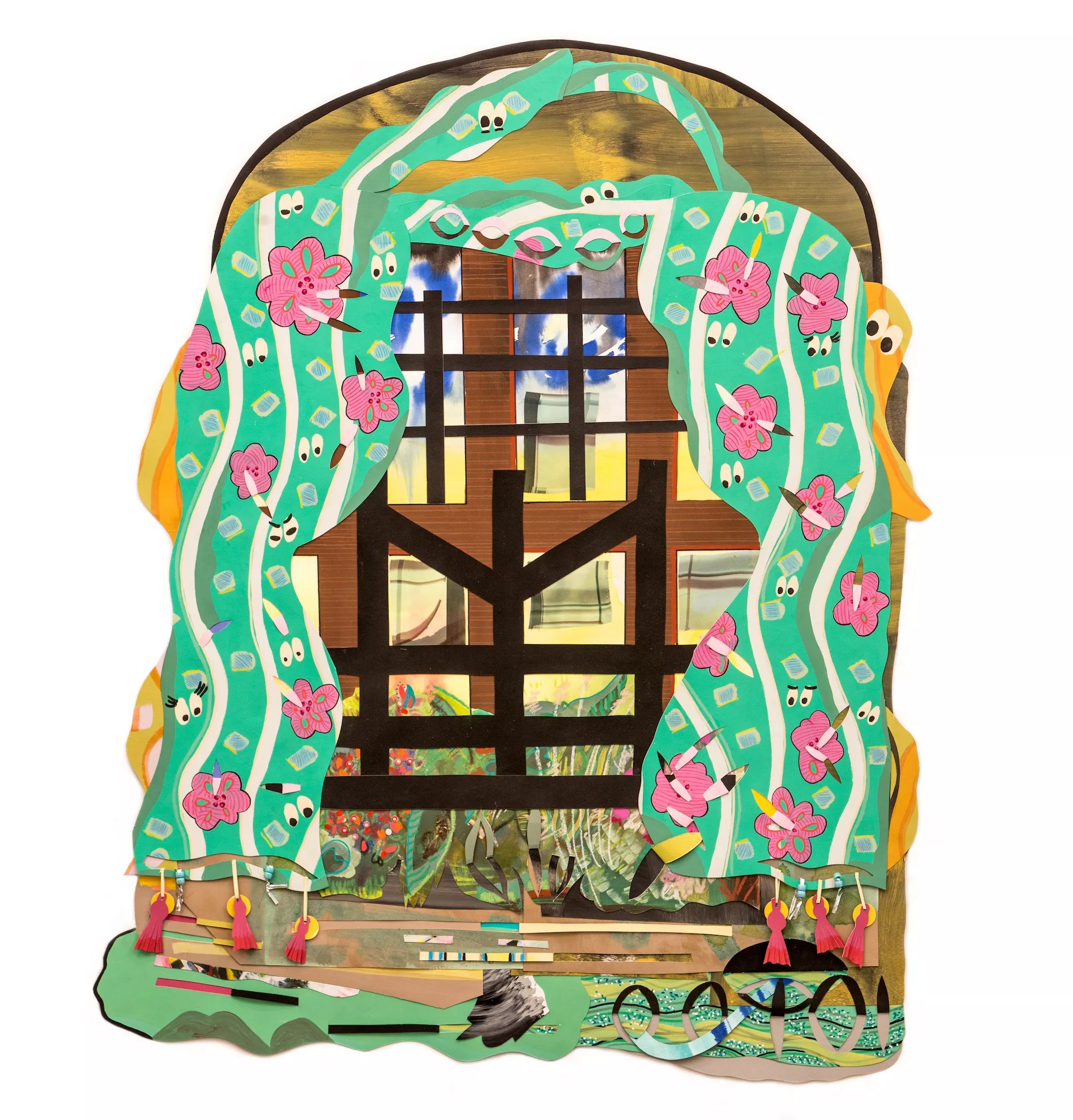 Amy Boone-McCreesh, “The Neighbors Are Watching,” 2021, mixed media and collage on paper, beads.