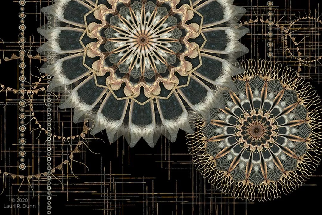 Balefire showcases photographer Lauri Dunn’s intricate photo-collaged insect-wing mandalas overlaid with metallic resin in August. The result is both fascinating and lovely. Meet the artist at the reception.