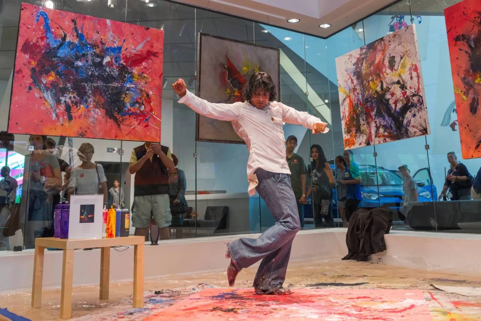 Rudi Monterroso paints with his feet, using his concept of Mindful Movement.