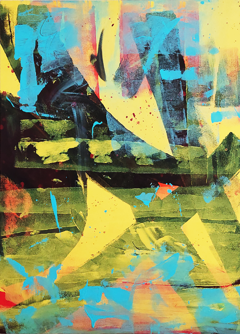 Jeff Kahm, “Instinct,” acrylic on canvas, (4 parts).
