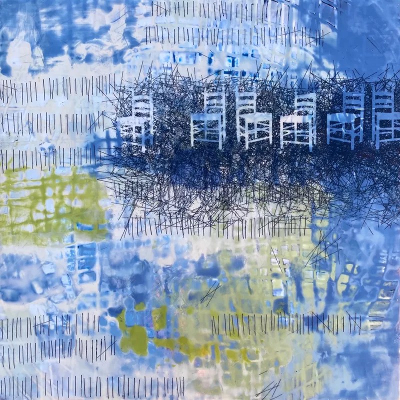 Niza Knoll Gallery wraps up its spring and summer Mix Co-op series by featuring Victoria Eubanks and Paula Romero Schmitt, a pair of artists working in mixed media and encaustic — the binding process of combining hot wax with pigment to create a thick medium. Eubanks incorporates imagery of everyday objects with abstract mark-making, while Romero Schmitt arranges tidy hexagonal tiles framing drawings of flowers and bees on the surface of her nature-inspired works.