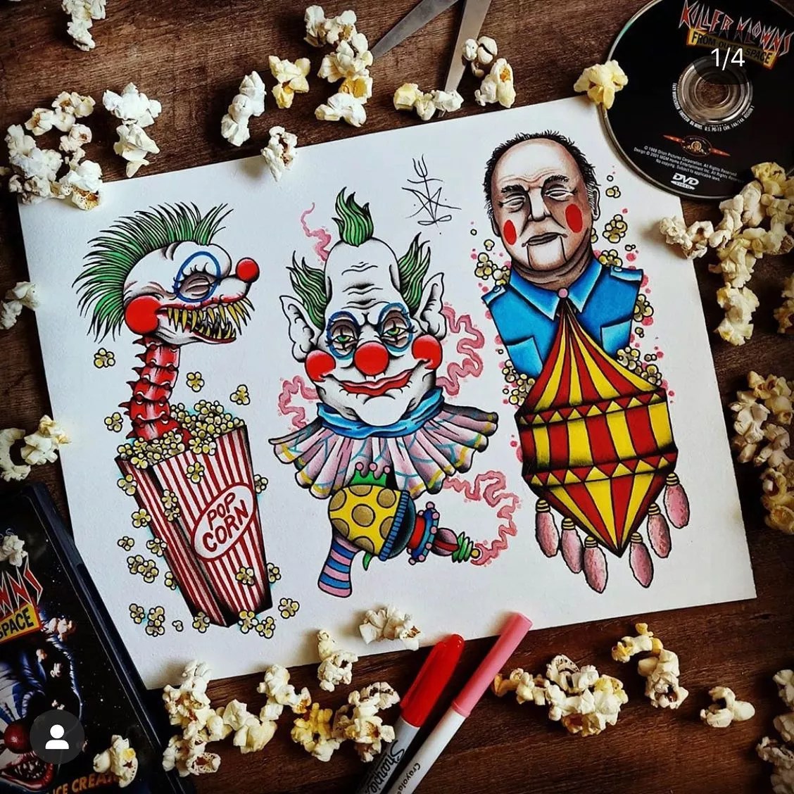Chris Buske, I Remember Trees ILA Gallery hangs more Killer Klowns from Outer Space Universe by @northwoodsphantom. @northwoodsphantom