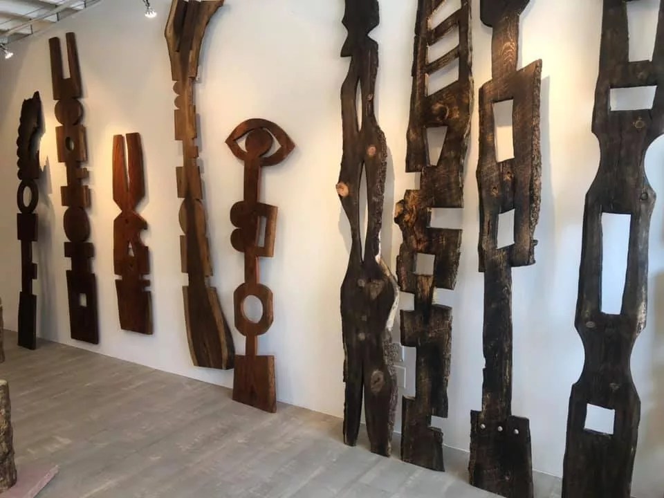 Soft Landing A section of wood totems by John Crandall. John Crandall