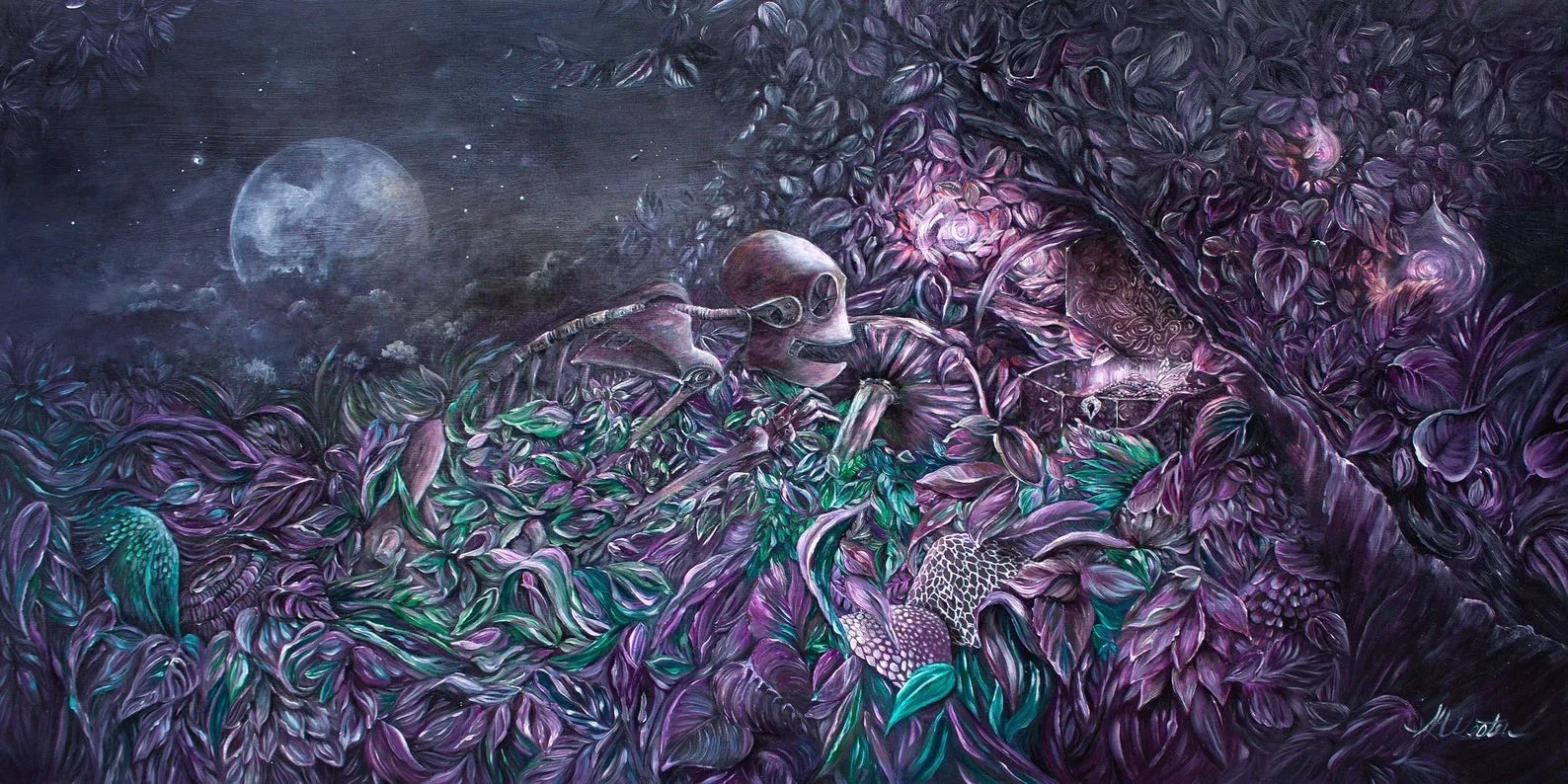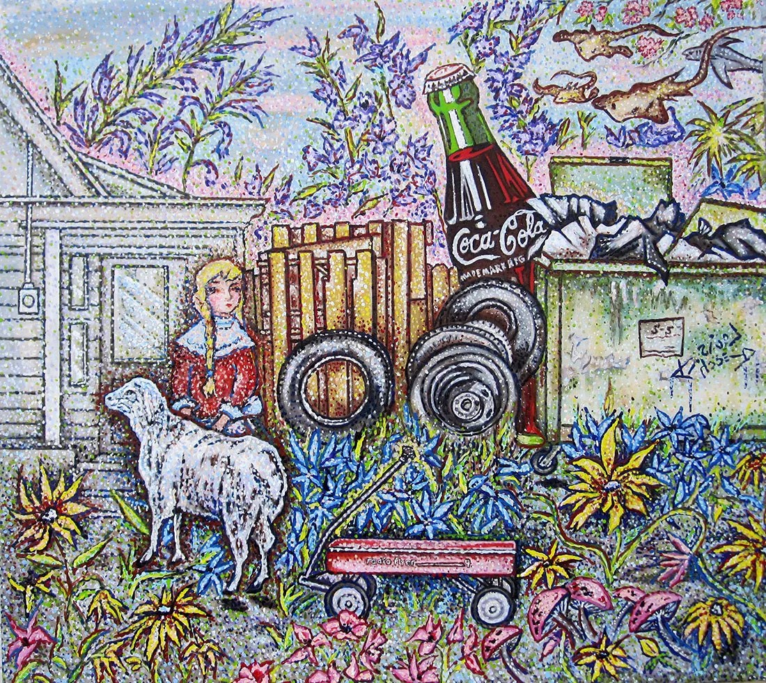 AK Westerman, “Pandora’s Folly Once Unfurled,” acrylic on wood panel.
