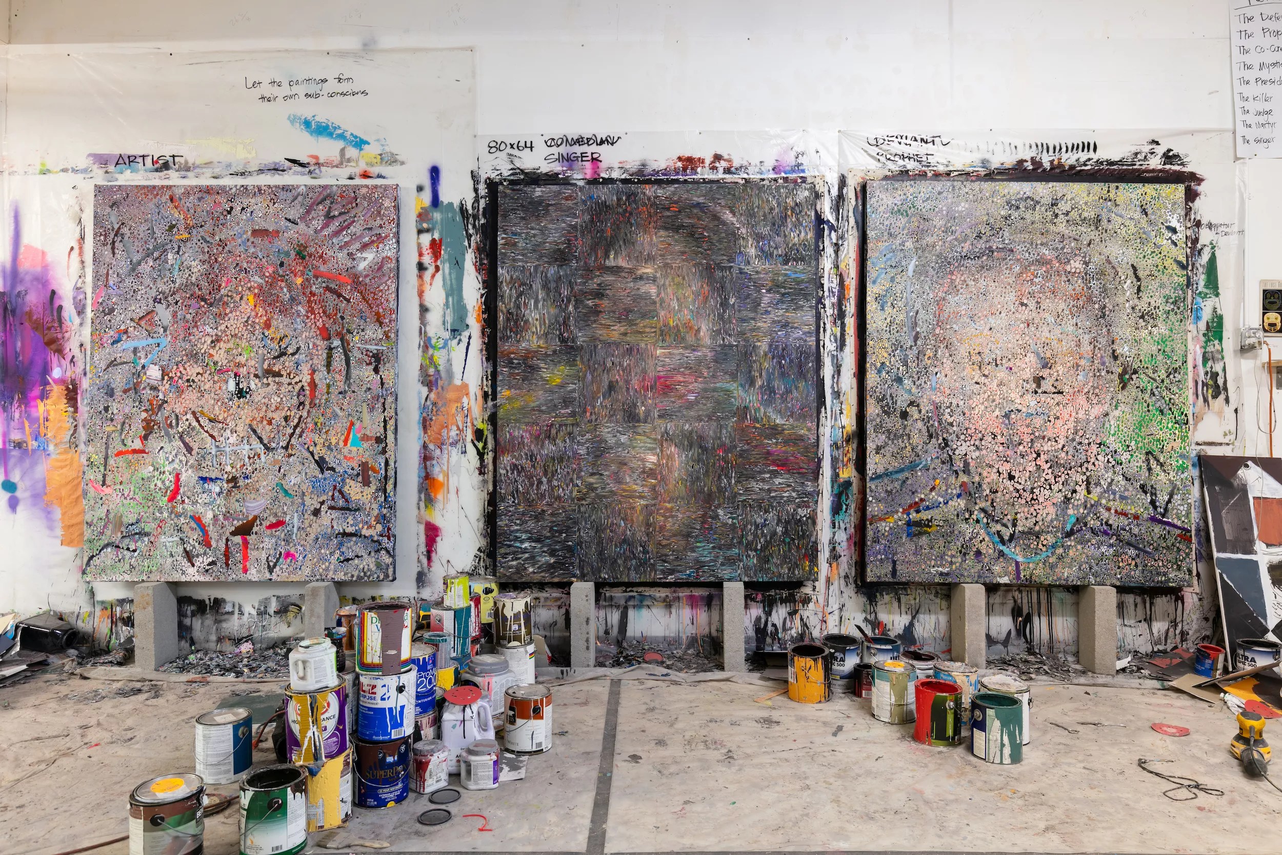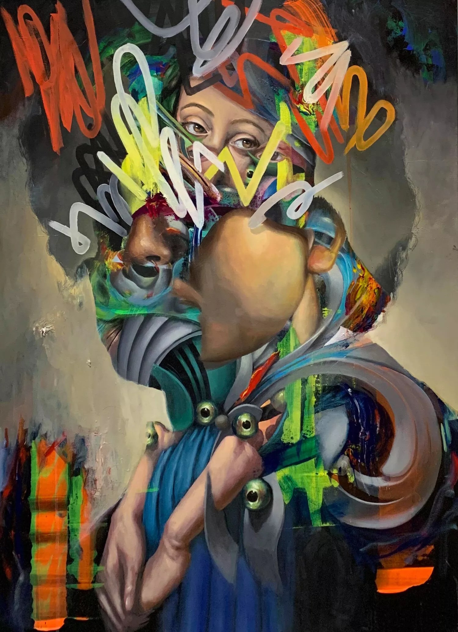 Painter Andrew Jensdotter fills K Contemporary from top to bottom with a series of works dubbed Road Work and inspired by a near-death experience and the arrival of the pandemic changing his life during times following his 2019 exhibition at MCA Denver. It’s complicated, but when Jensdotter compares life to a “constant game of chutes and ladders,” you begin to get the idea behind his thick, carved latex portraits, one painted over the other in a visual identity crisis, and the psychology behind Jensdotter’s personal act of leaving signs for others on a dangerous path.