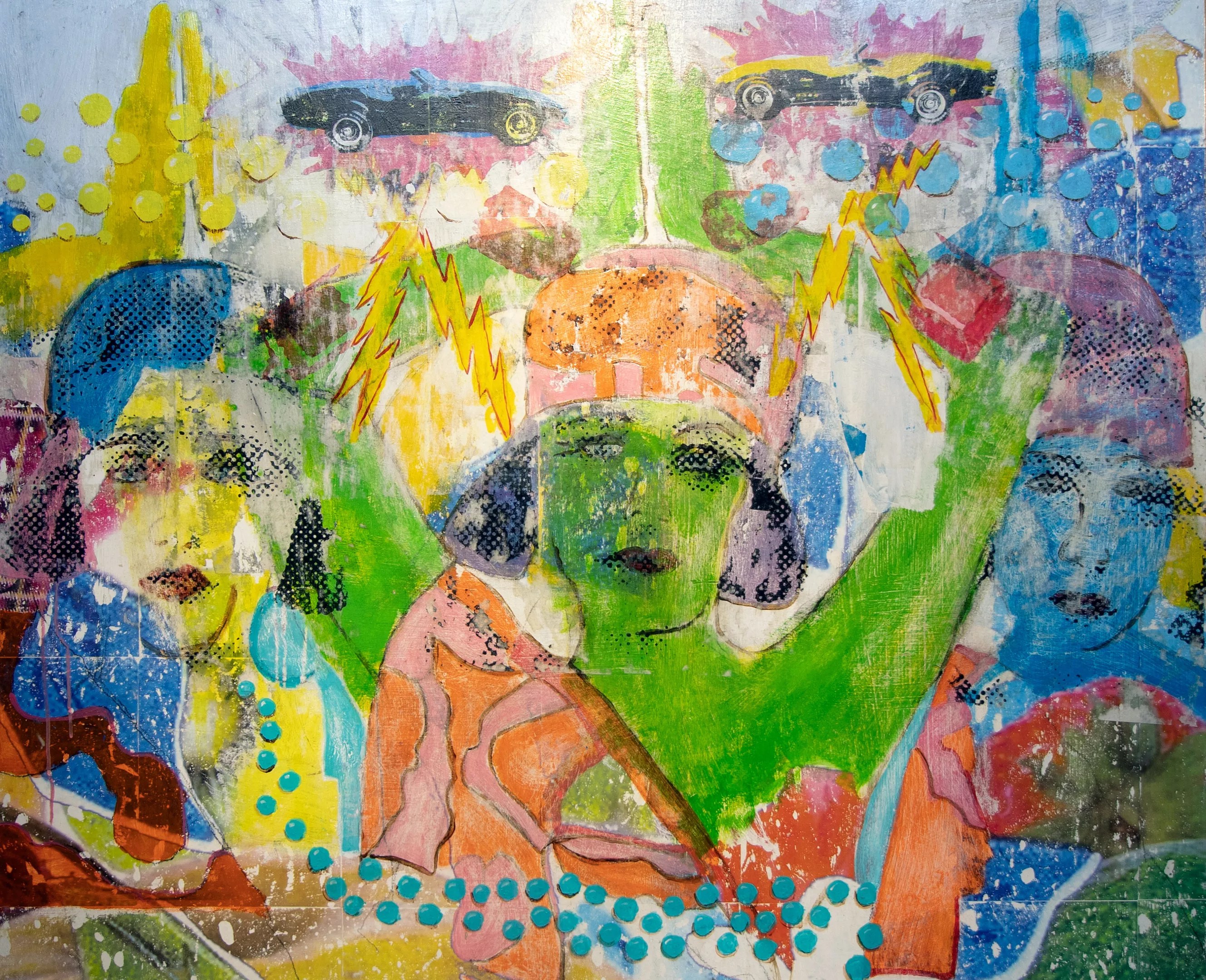 At Sync, Chad Henry shows collage pieces with overlays in pencil and paint, and Phyllis Rider pitches in with bold abstract paintings and prints, inspired by life in COVID-19 lockdown.