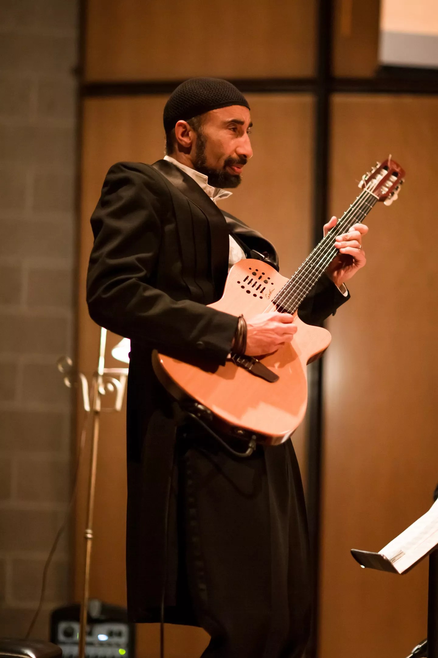 The challenge was in composing one soundtrack to satisfy the highly trained virtuoso players of the Altius String Quartet with a groove orientation that Congolese guitarist Rich Richerstone and drummer Christian Kosande could improvise over. Also performing: Walker on an electric oud, David Hinojosa on guitar, all while Ethiopian dancer Simon Costello dances across styles of movement.