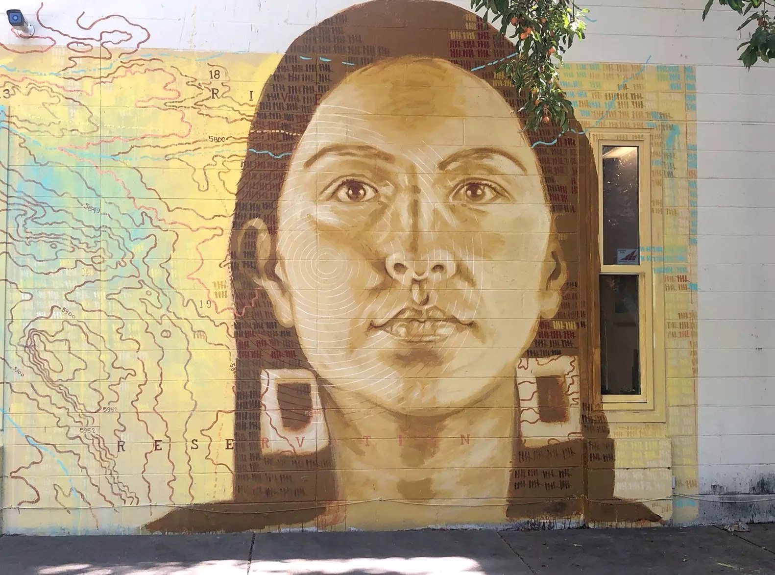 Through an effort by Street Wise and the City of Boulder, muralist and activist LMNOPI was allowed to honor missing and murdered indigenous women with a wall image at the Dairy Arts Center of local artist, dancer and actress Sarah Ortegon, superimposed over a topographical map of the Wind River Indian Reservation. In addition to coinciding with Indigenous People’s Day, the mural serves as a preview for upcoming collaborational events hosted by the Dairy with various indigenous communities and artists.