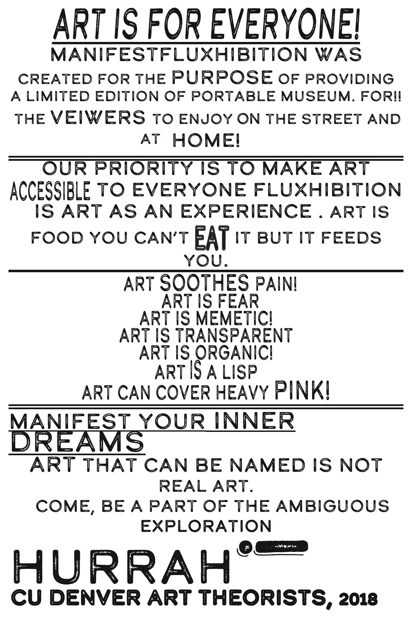 Join CU Denver art instructor Melissa Furness and her CU Denver Art Theory & Practice students at downtown art niche Next Stage for a real-time art-history lesson on the process-oriented Fluxus movement of the ’60s and ’70s. Enjoy student manifestos and Flux films, and take home a free Flux Kit of tiny original artworks if you’re one of the first sixty people to walk in the door.