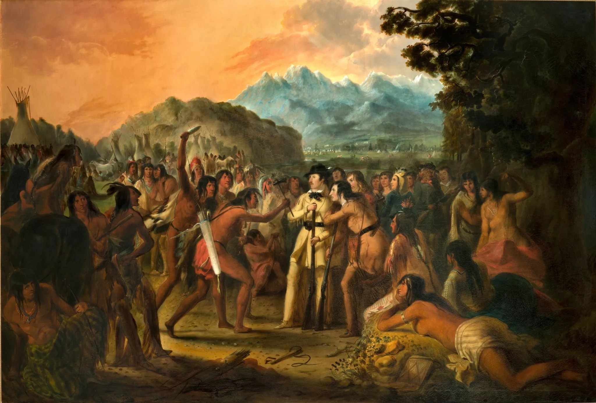Alfred Jacob Miller, “The Crows Attempting to Provoke an Attack From the Whites on the Big Horn River, East of the Rocky Mountains, 1841.â€