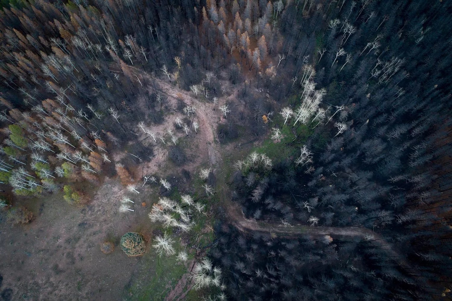 An aerial view of the Spring Creek fire off La Veta Pass by Evan Anderman.