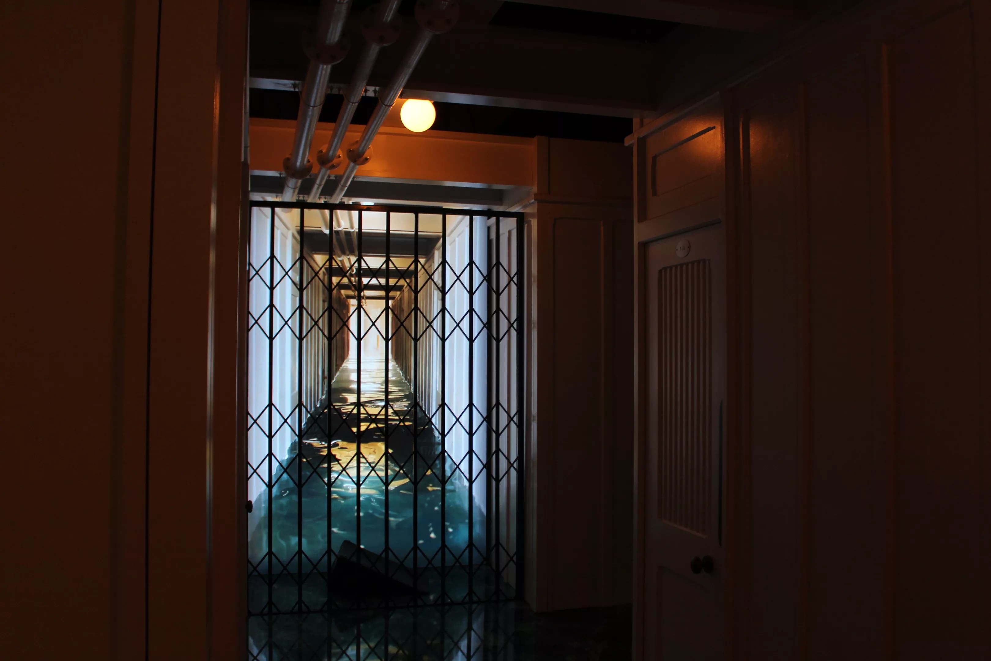 A simulation of a hallway flooding after the Titanic struck an iceberg.