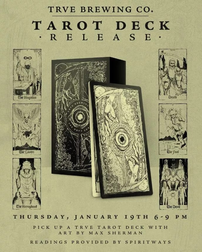 A death-metal brewery, tarot cards and spiritual readings? It’s a match made in oracle heaven, and on Thursday, January 19, TRVE Brewing will debut a special-release tarot deck while offering spiritual guidance and readings from 6 to 9 p.m.