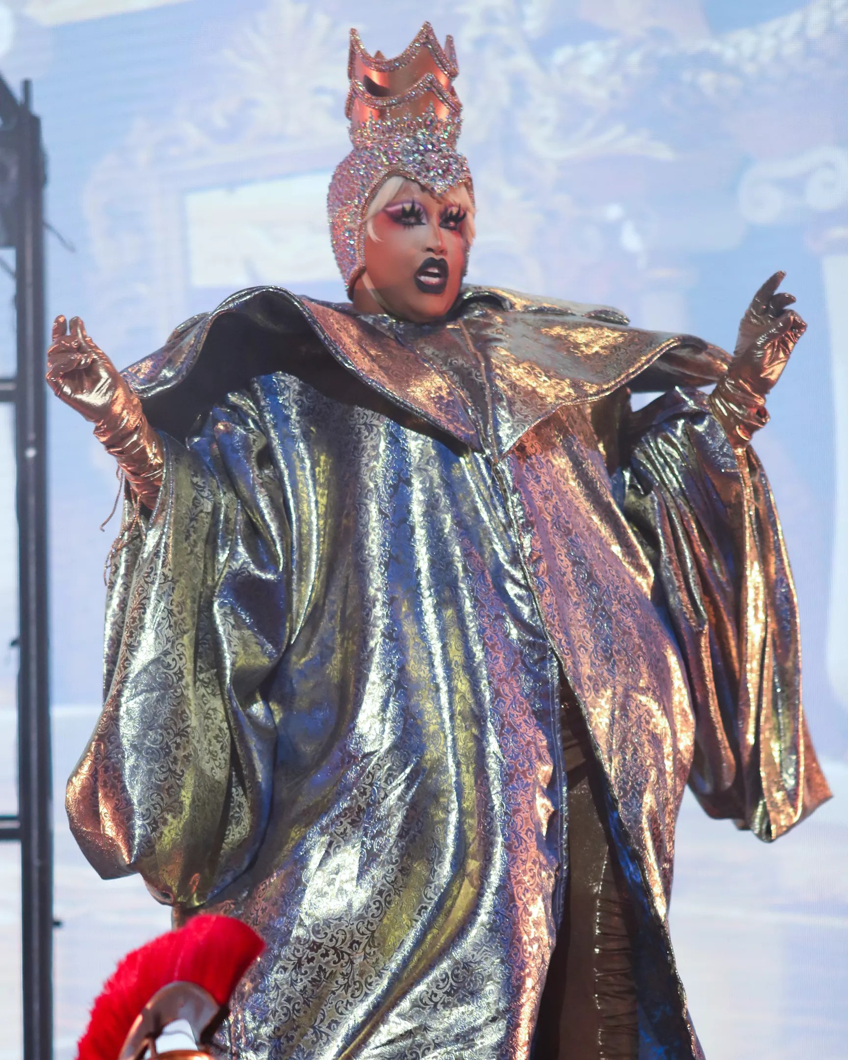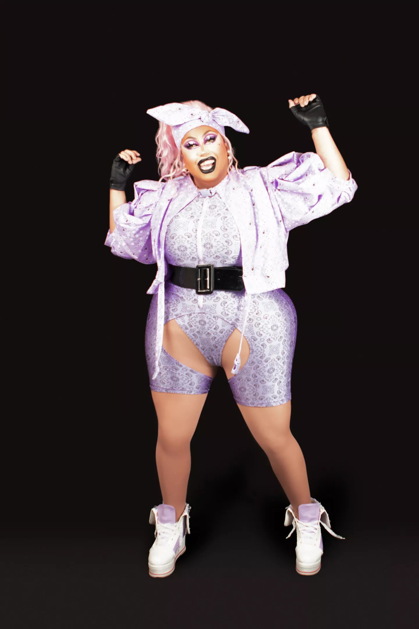 While she proudly made all of her own looks for her time on Drag Race, she’s starting to get used to working with other designers now that she has “a little bit of coinage. I will make myself stuff that I know that I look good in, like catsuits. But I have been loving seeing the vision from other designers and seeing their style on me,” she says. “They always say after Drag Race that your drag elevates, and it’s because you have more money now.”