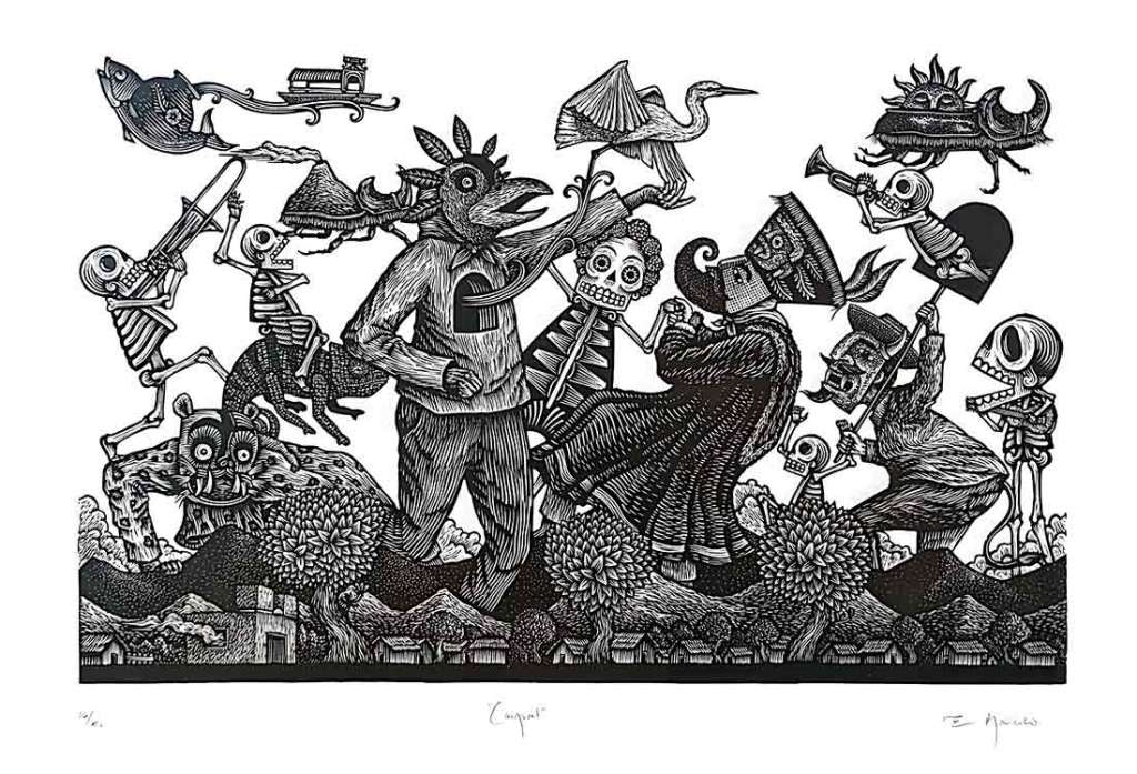 Step into a world inhabited by animal spirit guides, shamans who can manipulate the weather and farmers who till both soil and spirit. Xochimilco: Works by Eduardo Robledo Tomero, which opened October 11 at the Denver Botanic Gardens, highlights the complex ties that bind Mexican culture to the natural world through both Indigenous and European beliefs. Robledo’s artworks draw on cultural traditions from his hometown of Xochimilco, as well as his own personal experiences; he’s co-founder of the Lugar de huida gallery, a space dedicating to showcasing Mexican printmakers.