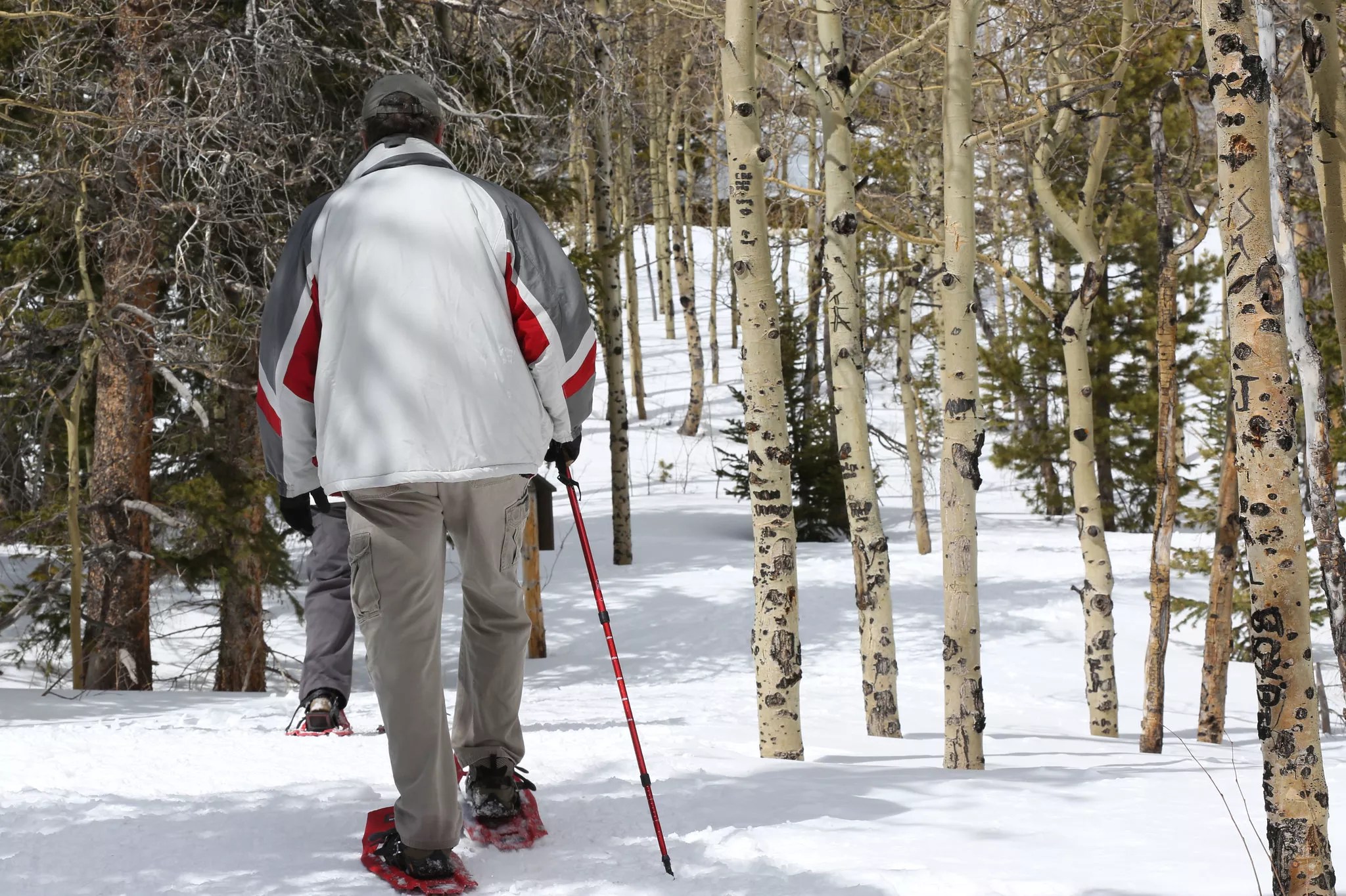 This super-short hike still packs a punch. Located off of Swan Mountain Road in Summit County, it offers stunning views of Lake Dillon, the Ten-Mile Range, the Gore Range, and the towns of Frisco and Dillon. This trail is quite popular, so expect packed snow over an even surface. On a sunny day, shoes with good traction should be all you need to do this trail. Sapphire Point Trail is so beautiful and easy, you may hike it twice.