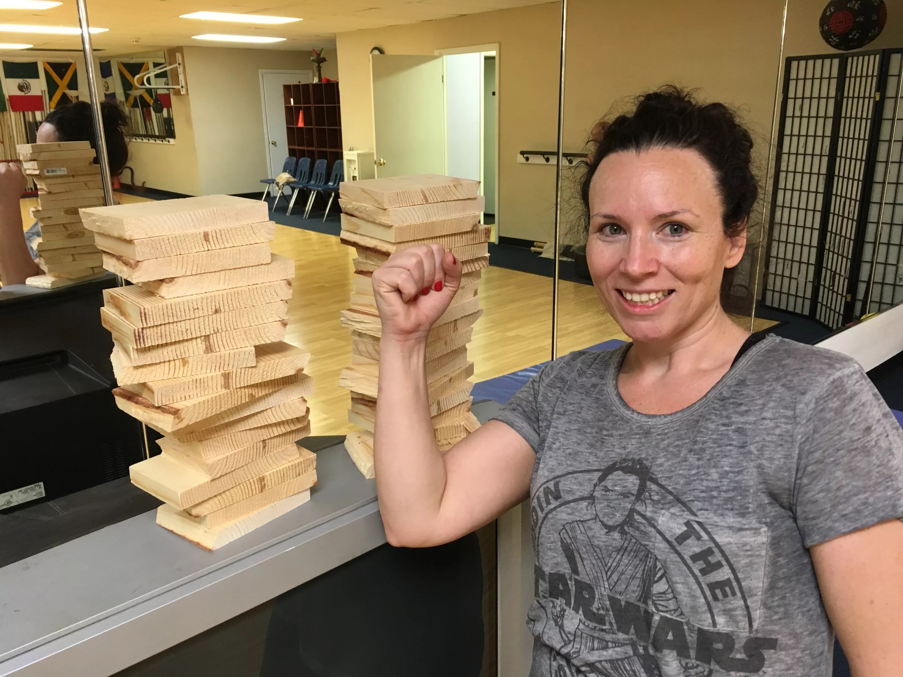 For other women to get involved, it’s inexpensive, so we can grow it. It’s going to be a positive movement for women to own their power. One of my students, the first thing she did after breaking through the three layers of wood, I made her break through all the crap. I made her write it down, and she broke through it, literally.