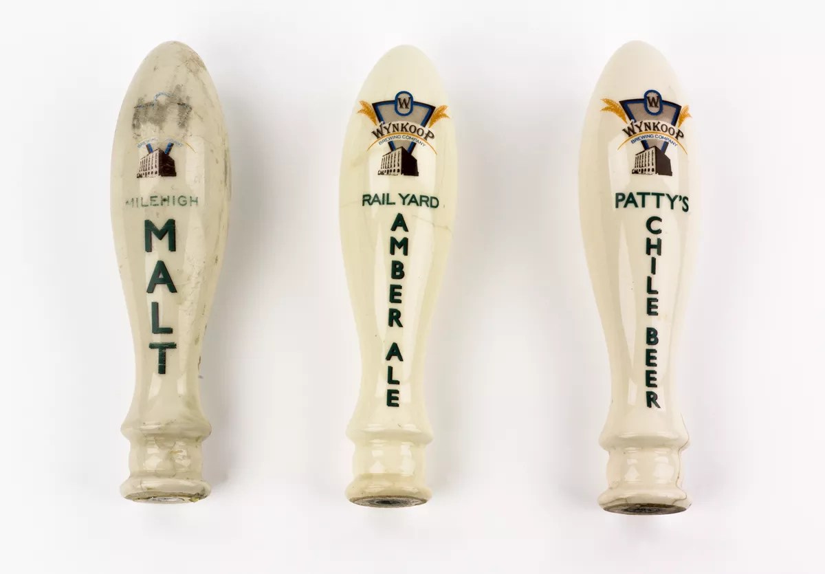 One of the items in the exhibit that particularly impresses visitors is a pair of anti-contamination gloves from the Rocky Flats Nuclear Weapons Plant; Hanson thinks that could be because curators did a striking job of mounting the gloves. But those visitors might be more impressed if they knew the whole story: Not that long ago, Cold War workers used those gloves to help make plutonium triggers for nuclear bombs. In 1989, Rocky Flats got out of the bomb-making business after the FBI raided the plant to investigate alleged environmental crimes there. A grand jury charged with considering the evidence seized during that raid wanted to indict eight individuals; instead, the Department of Justice sealed a deal with Rockwell International, which was operating the plant at the time. A $7 billion cleanup of the facility followed; next year, much of Rocky Flats is slated to become a wildlife refuge open to the public. A portion at the center, where most of the really dirty work was done and those gloves were used, will remain forever off limits…or at least until the history of the place is forgotten. Wynkoop Brewing Company tap handles (about 1988). Courtesy History Colorado Center