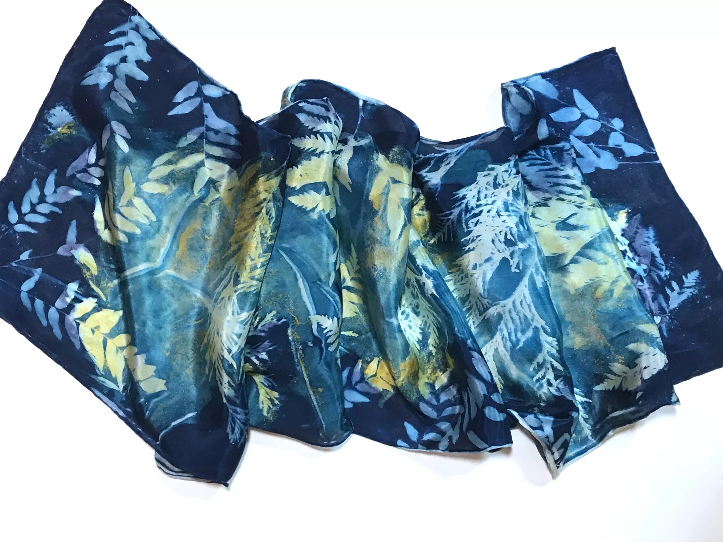 Find Susan Lange’s hand-dyed silk scarves with cyanotype prints and more at the Arvada Center Galleries.