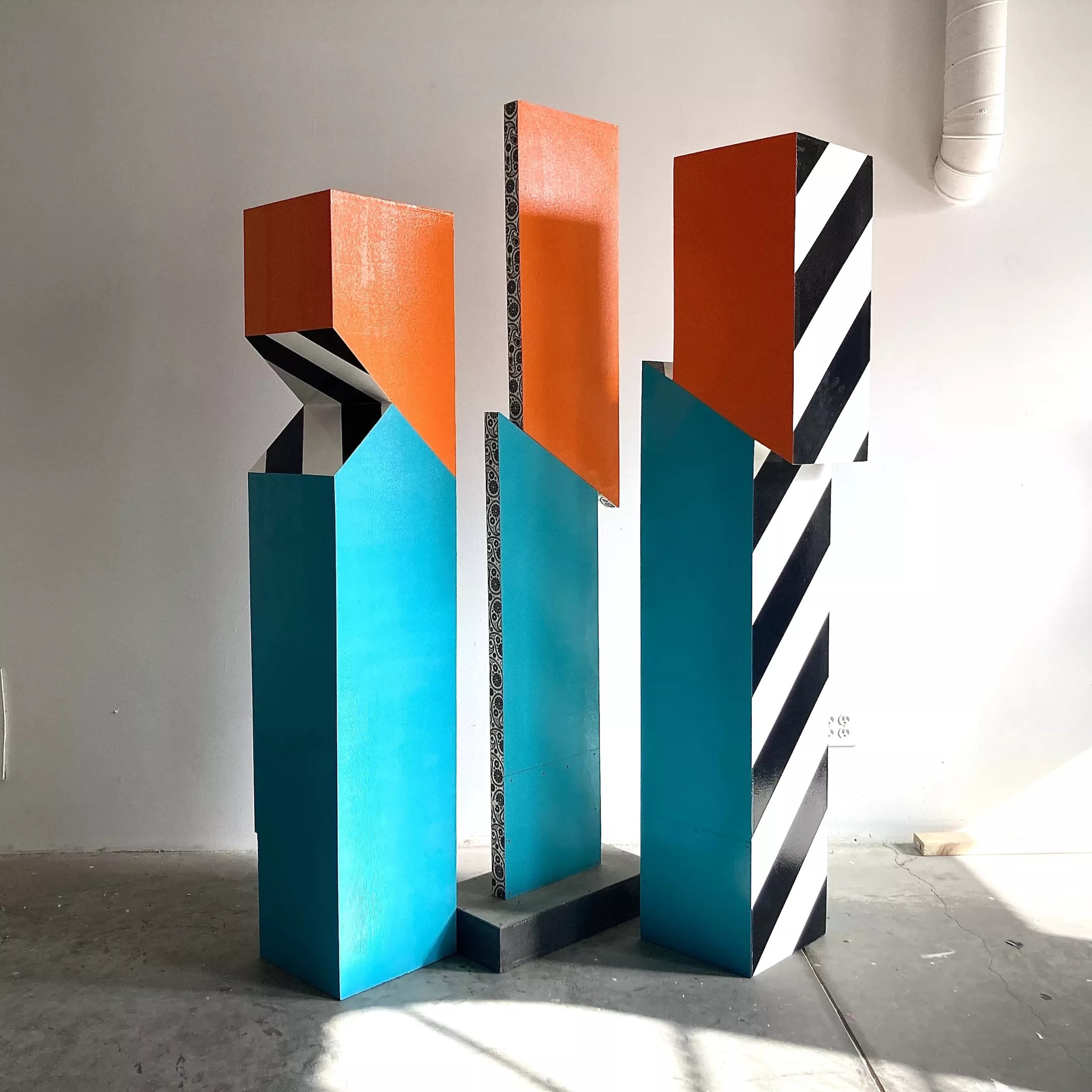 Sculptor Joshua Ware, known for his art reviews and the fractured geometric columns he builds, stewards his first solo exhibition at Leon Gallery with a message about the indirect impact of viewing art and parsing out the secrets it contains. Slashed with jagged cuts and patterned angles, Ware’s columns are never straightforward and always challenge the viewer to feel his or her way through the mysteries of each plane. Or, as he writes: “Become oblique.”