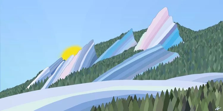 Modern landscape artist Topher Straus, known for his mountainscapes painted in ribbons of color with a hand from technology, will show new works at R Gallery in Boulder for the holiday season.