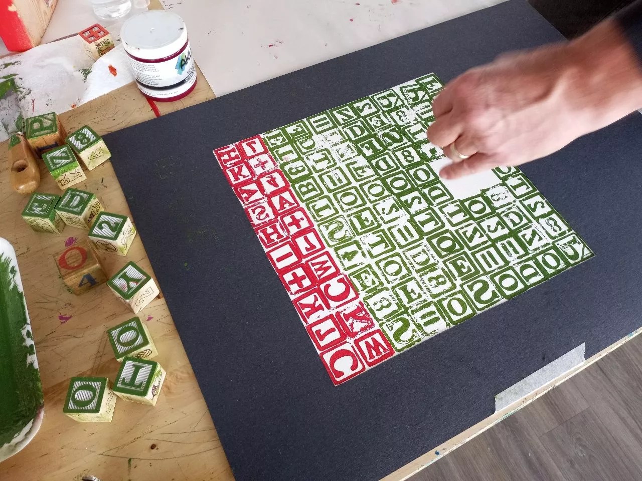 Learning to block print at Access Gallery.