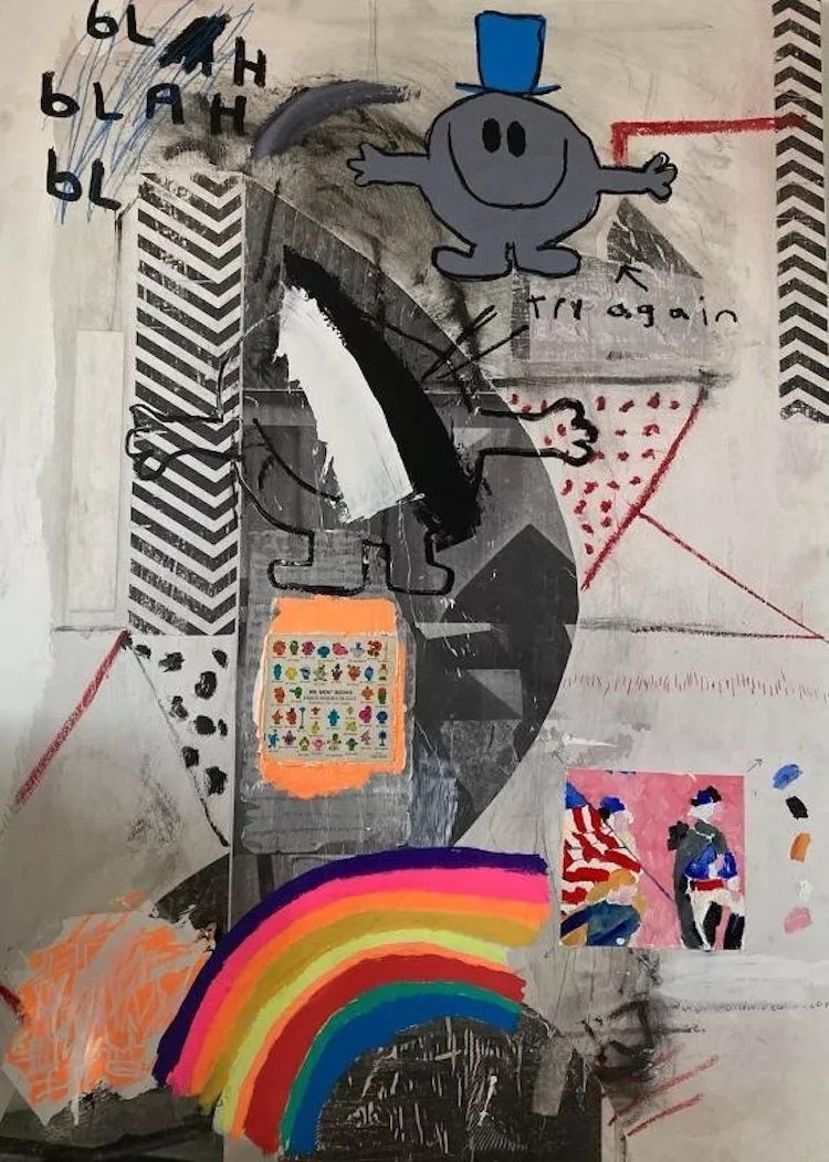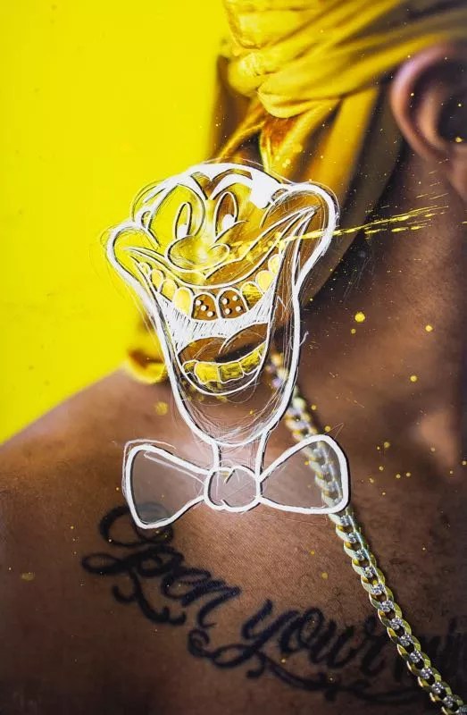 André Ramos-Woodard, “BL!NG,†2020, digital illustration, chalk, colored pencil and watercolor on inkjet print.