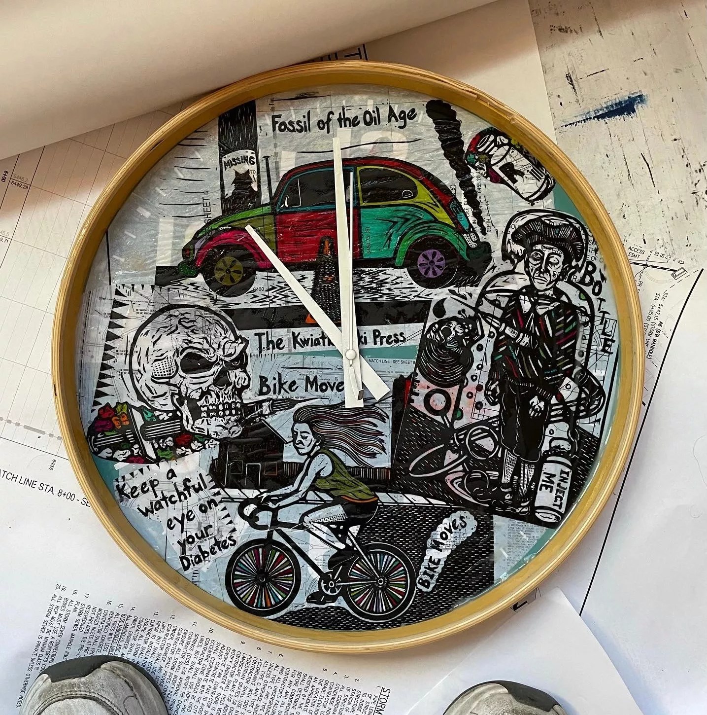 It wouldn’t be Mo’Print without a show by Frank Kwiatkowski, a pedicab driver who in 1999 began carving up traffic cones to print poster imagery depicting street people, autobiographical stories inspired by his fight with diabetes and pedicab adventures. Usually, you only can buy his work on his website — or during a pedicab ride through downtown streets.