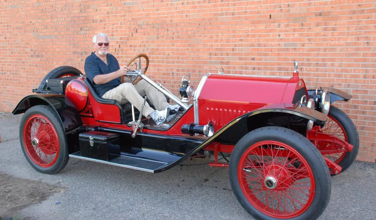 The late author in one of his classic cars.