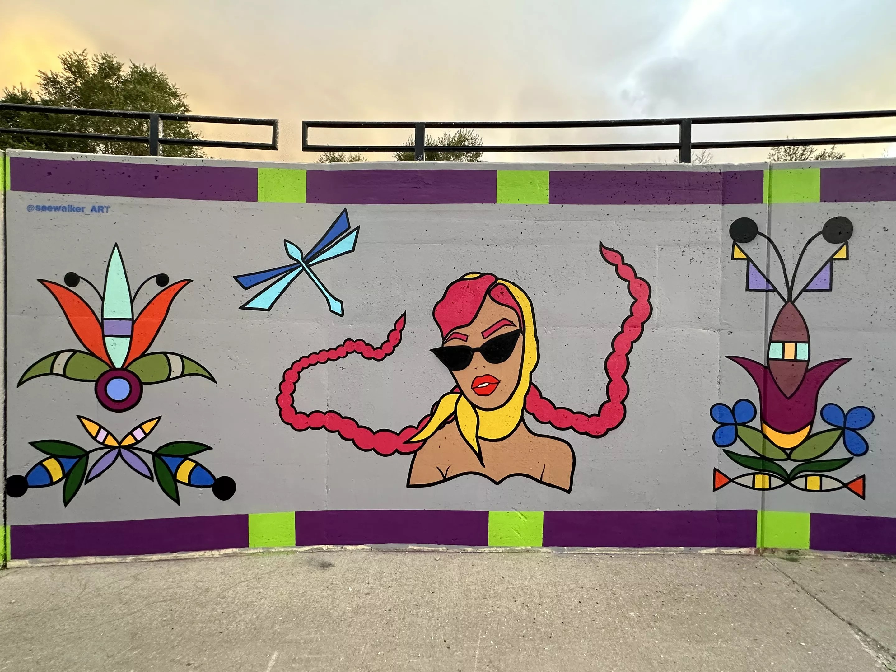 She wants to set an example of pride for younger generations so they never have to feel the shame she and others did. Having such representation in the arts is important, SeeWalker says. “If I would have seen Native art in a mural or had a Native person come in and talk to my whole class, I would have been like, ‘Wow, I’m proud, this is my culture. This is who I am.’ But that was not the case,” she says. “So I really want kids today to feel proud of who they are, to not feel ashamed. I try to work really hard to make the opposite of what I went through.”