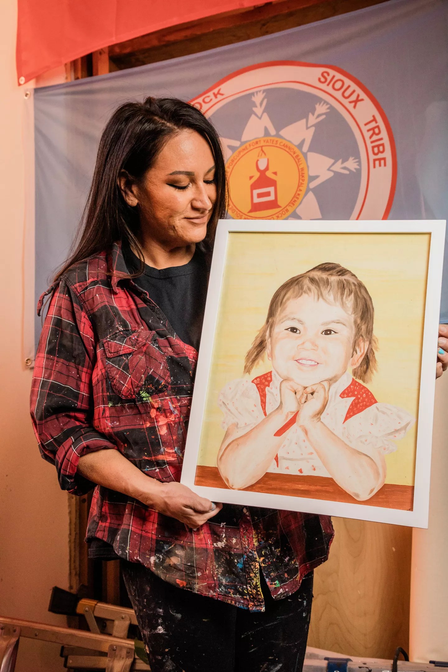 SeeWalker, a Húŋkpapȟa Lakȟóta and a citizen of the Standing Rock Sioux tribe in North Dakota, is sitting in a chair in the corner of her Denver studio, just below a portrait that her father painted of her when she was young. The young Danielle has an infectious grin, her hands propping up her head over a background of warm yellow.
