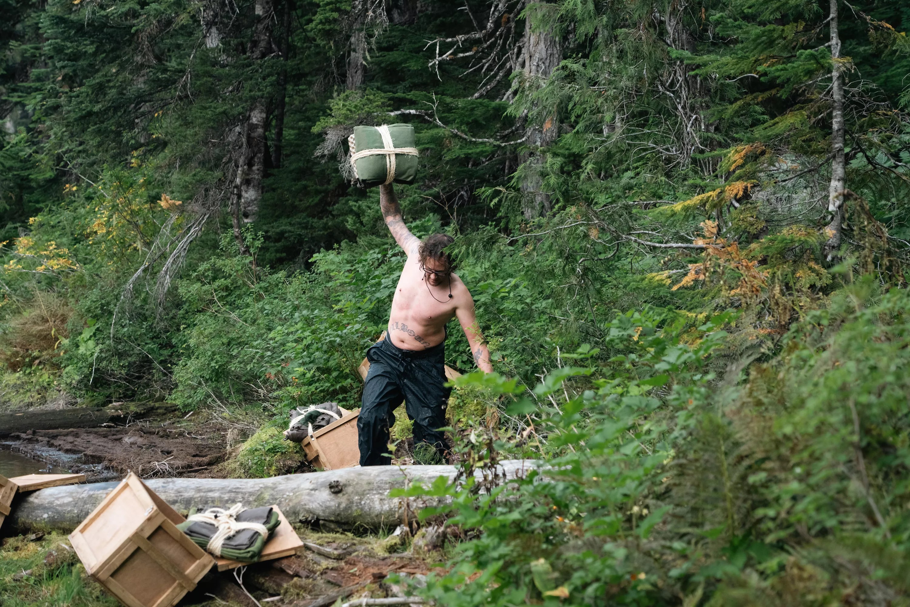 Families at HQ were tasked with designing a raft and selecting tools that would help survivalists reach the other side of the lake. There, shelter supplies were stored in three crates. Arriving first would grant a competitor access to a better cache (such as the gold package containing two tarps, a rope and a thick bear skin), as well as an advantage during the next supply drop.
