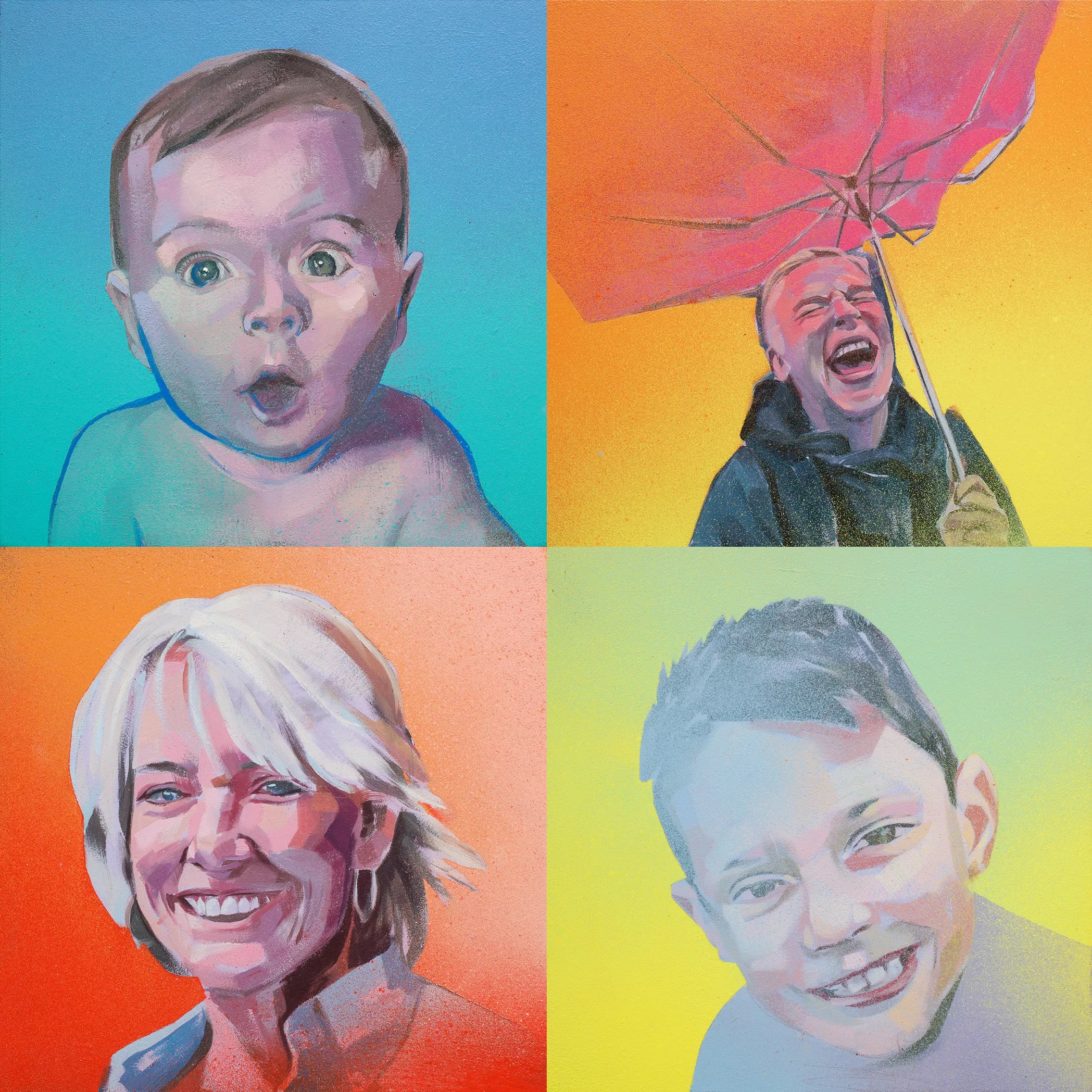 One condition is that the original images be lighthearted, even silly, in nature. Their motto? “We know life isn’t all rainbows and unicorns, but 7000 Reasons will be!” Rendered in happy colors that pop out of the wall, each finished product represents an exchange of something more meaningful than mercenary. And they look even more beautiful in blocks – an incentive to get portraits made of whole families.