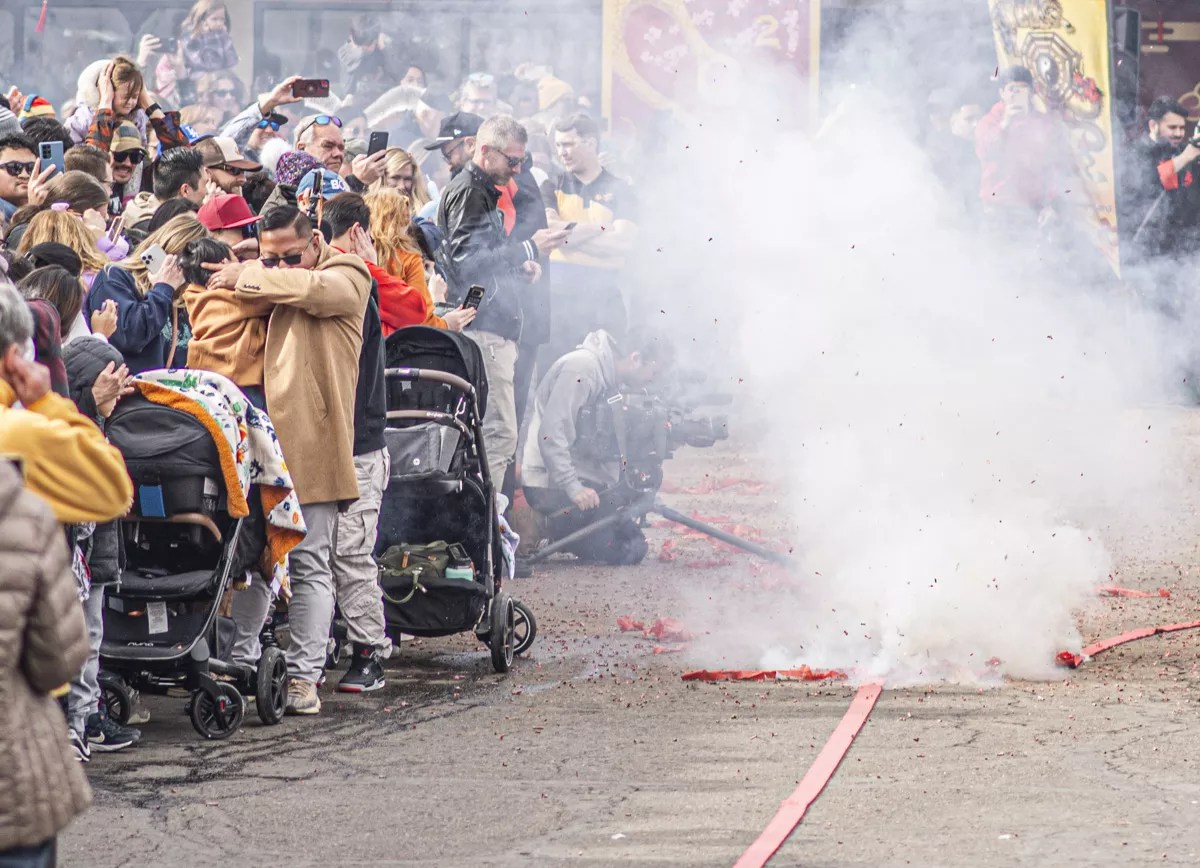 Chinese New Year attendees laughed when attacked by a dancing Chinese lion.