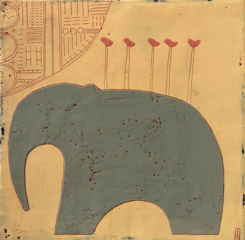 Michele Messenger, “Elephant Birds,” encaustic.