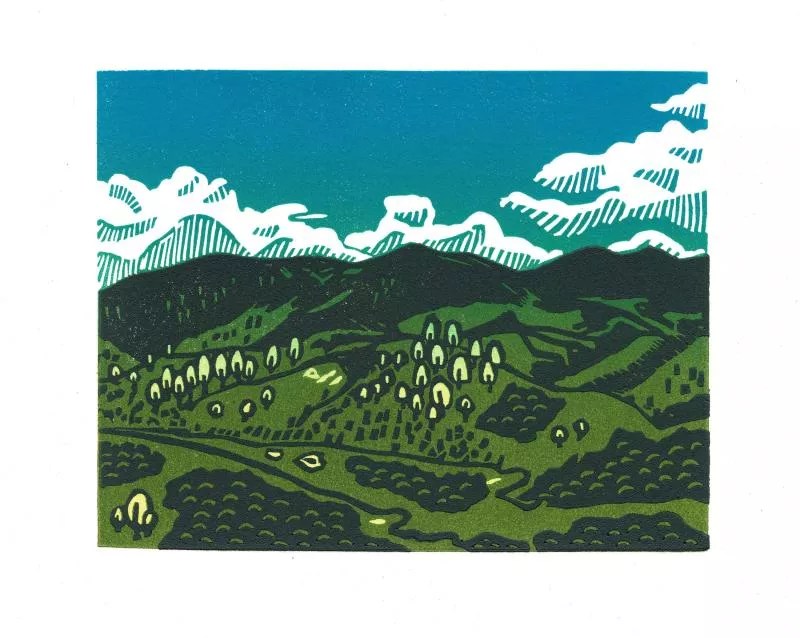 Angel Estrada, “San Isabel #3, 2022, reduction linocut.