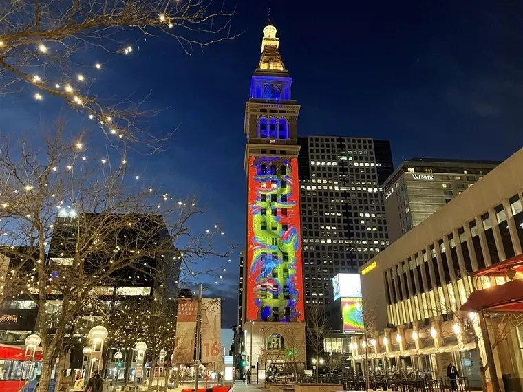 For Women’s History Month, Night Lights Denver is presenting a collection of time-based artworks projected on the side of the Clocktower; the work is designed to express conversations unique to each artist’s practice. This program was independently curated by Sharifa Moore, executive director of Denver Digerati; find out more here.