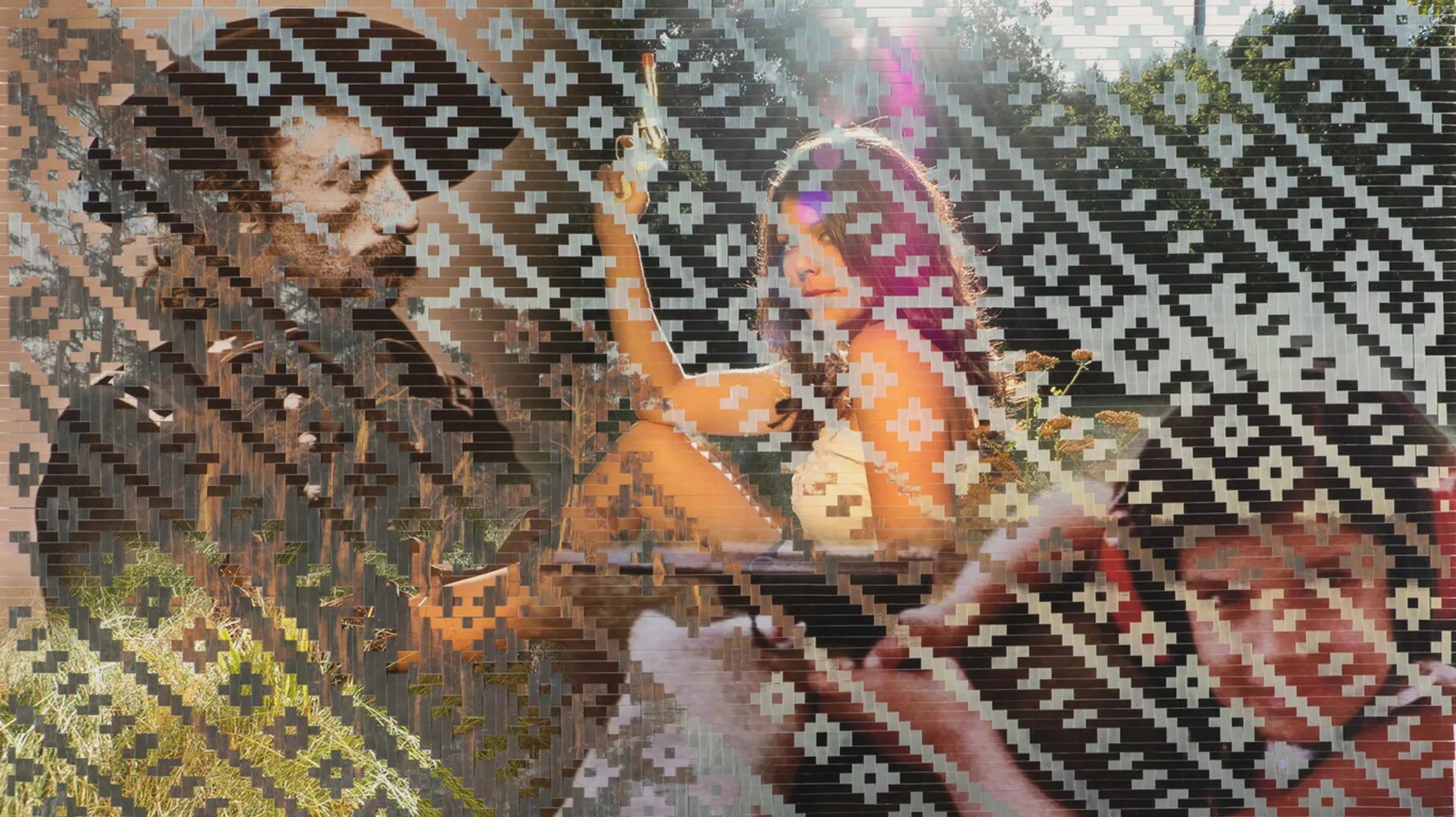 Sarah Sense, “Cowgirl, Custer, and Young Impressions†(detail), from the series Cowgirls and Indian Princesses, 2018, woven inkjet prints on bamboo and rice paper, wax and tape.
