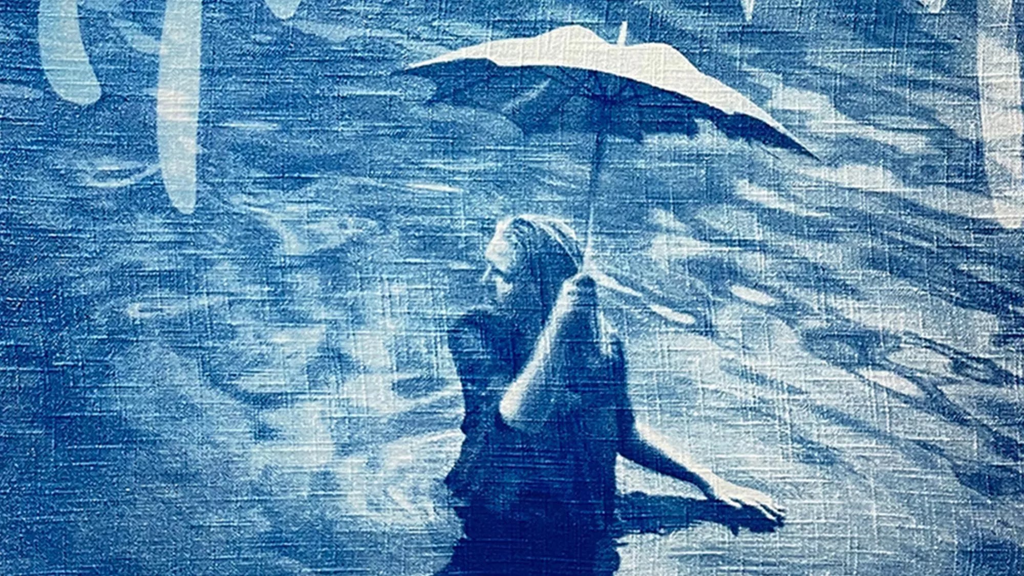 Emma Powell, “When It Rains Knives” (detail), cyanotype on linen fabric.