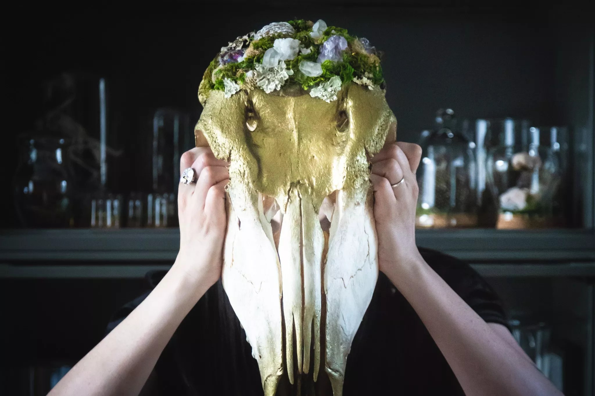 Jessica Ellis in her studio creating “Curioscapes” for the Morbid Curiosities exhibition.