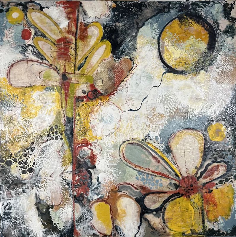 Manifesting Clutter by Tracey Russell and What Remains by Talia Johns are two concurrent solo shows exploring themes of material presence, psychological space and transformative perception. Russell, a local abstract artist, elevates the overlooked in her exhibit, taking inspiration in mundane objects like paper, containers and towels. Through sketches drawn from life and translated into expressive paintings, clutter becomes a visual language of patterns, colors and lines in Manifesting Clutter. Meanwhile, fiber artist Johns’ What Remains is an introspective and materially diverse exhibition investigating memory, conflict and endurance. Johns uses materials like shadow-cut panels, wire forms and collaged color studies.