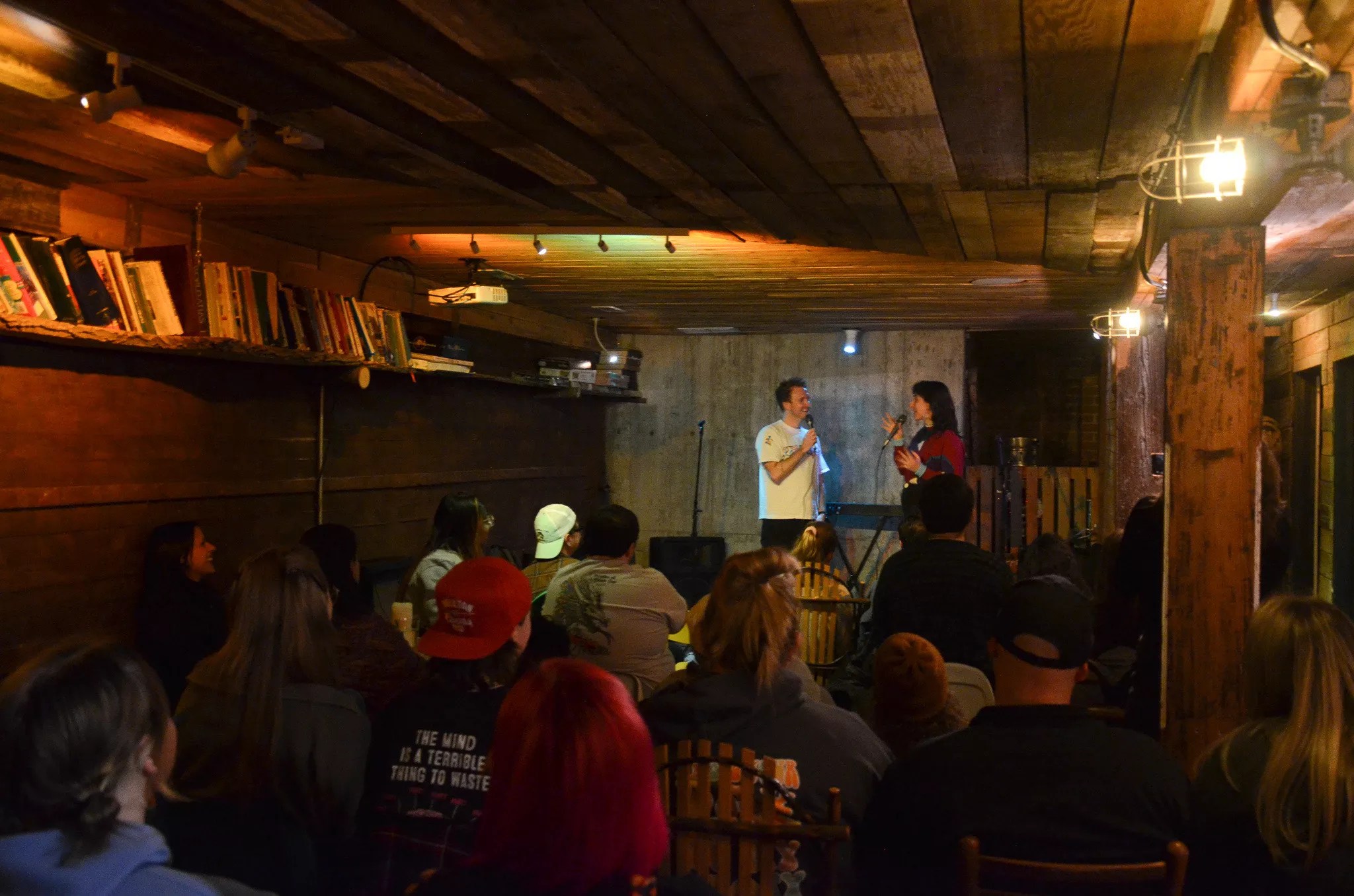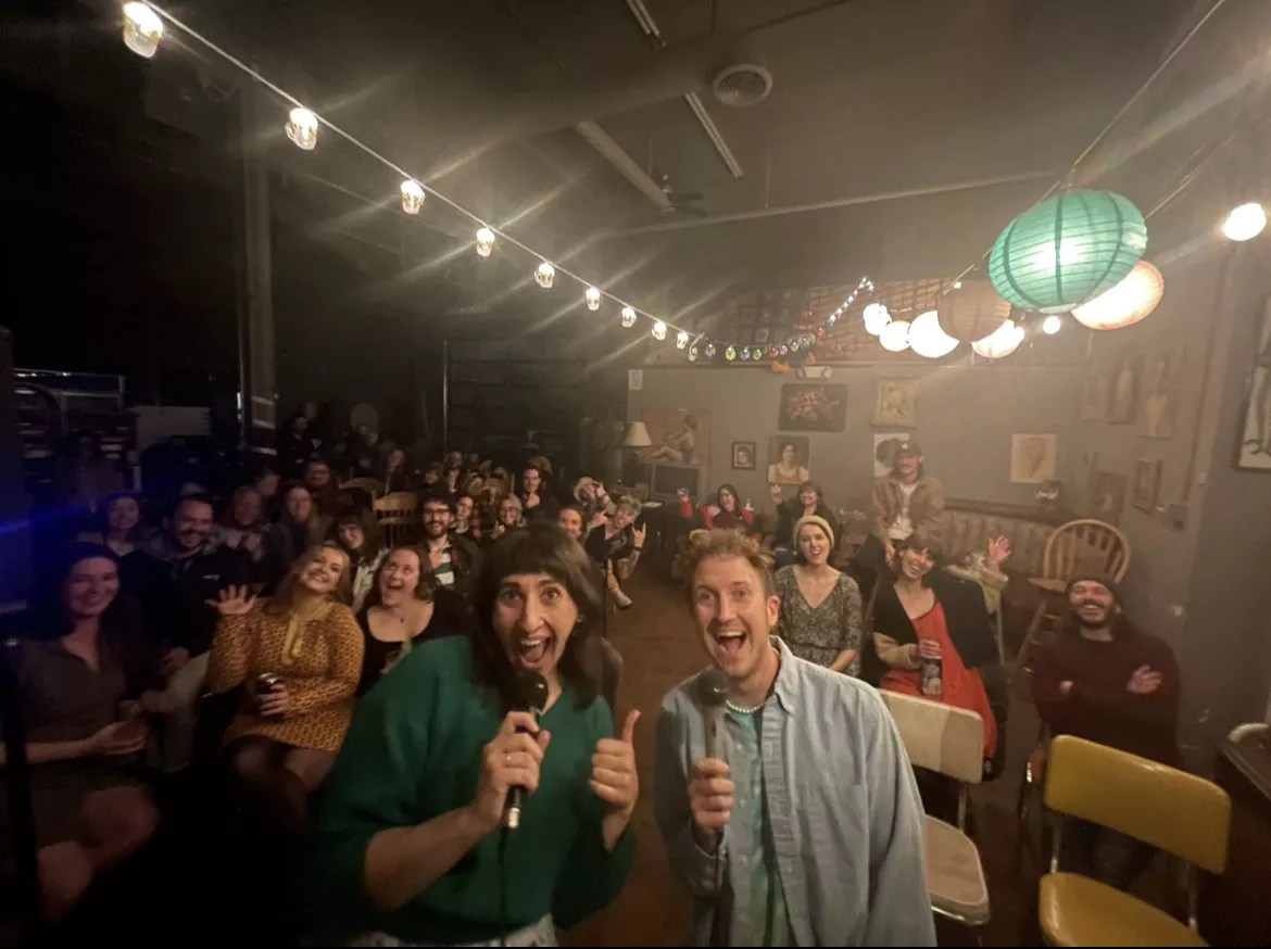 “We run the show together,” Angard says. “We sandwich the show with music, so it starts and ends the show. After the music, Jared and I will go out to warm the crowd up by being ourselves. Then we will have performers come up and do their sets, with Jared and I performing in between each one as well.”